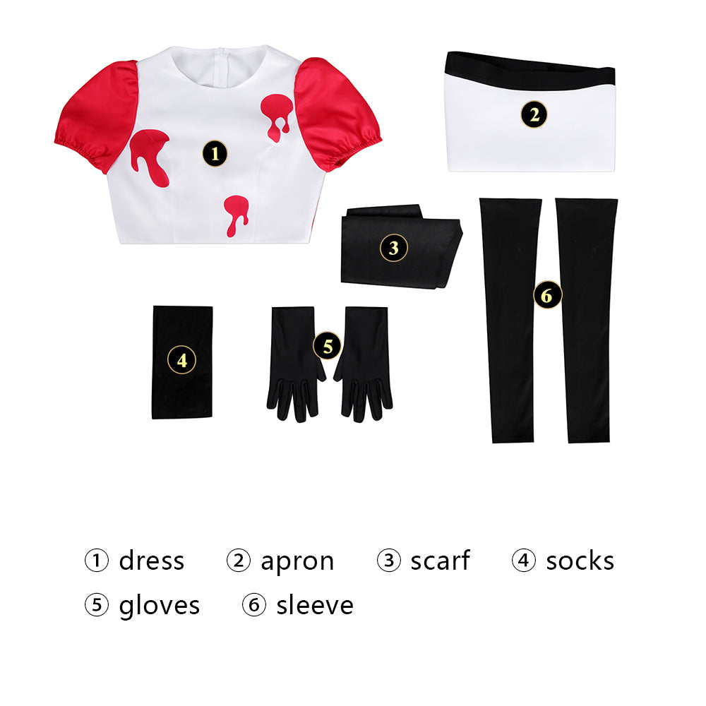 Step into the chaotic and colorful world of the Hazbin Hotel with this meticulously detailed Niffty cosplay costume! Perfectly capturing the look of the energetic and obsessive little maid, this outfit is designed for fans who want to bring their favorite one-eyed demon to life. Whether you're heading to a convention, a Halloween party, or a photoshoot, this full set has everything you need to look the part.