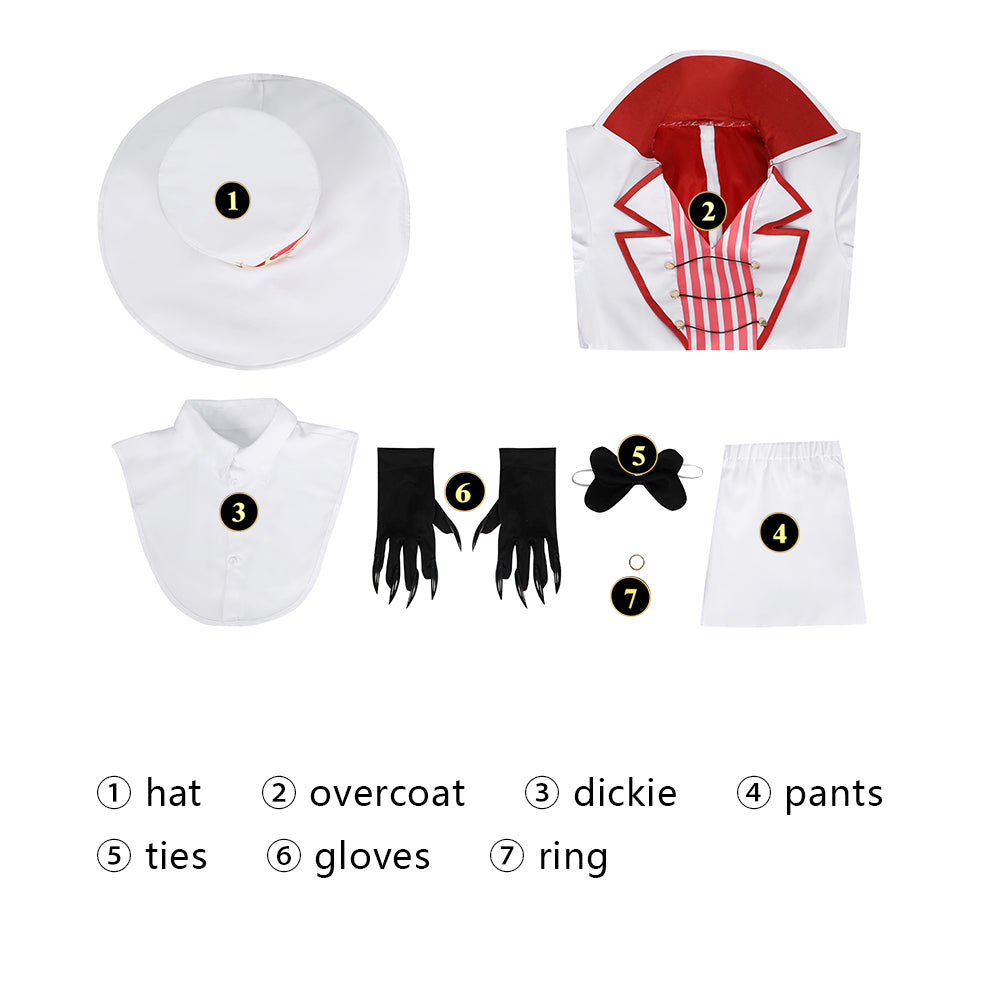 Step into the spotlight as the charismatic King of Hell! This premium Lucifer Morningstar cosplay costume is meticulously designed to recreate his iconic look from Hazbin Hotel. Whether you are attending a convention, a Halloween party, or a photoshoot, this full set provides everything you need to rule the underworld in style.