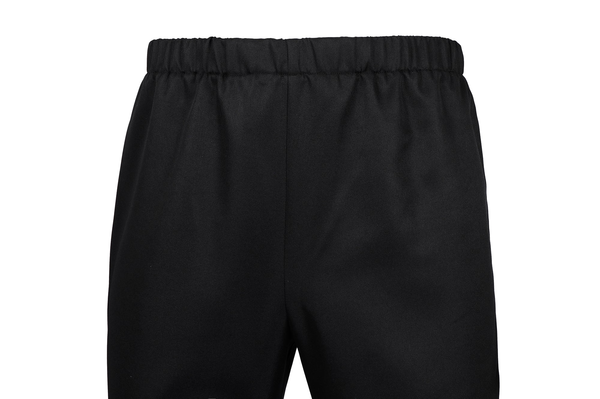 A: No, the fabric is non-stretch. The jacket is made of soft woolen cloth and taffeta, while the shirt and pants are made of uniform cloth. Because the material does not stretch, we highly recommend measuring yourself accurately and referring to our size chart before ordering. If you are between sizes, it is usually safer to size up.