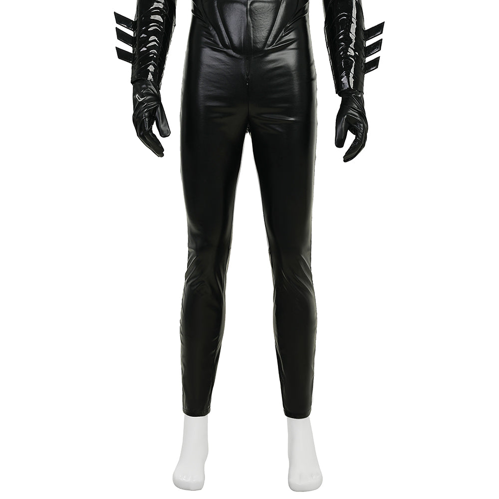 A: The standard set includes the eye mask, the main bodysuit, a pair of arm bracers, and a pair of gloves. The wooden Escrima sticks (weapon props) are an optional add-on and must be purchased separately.