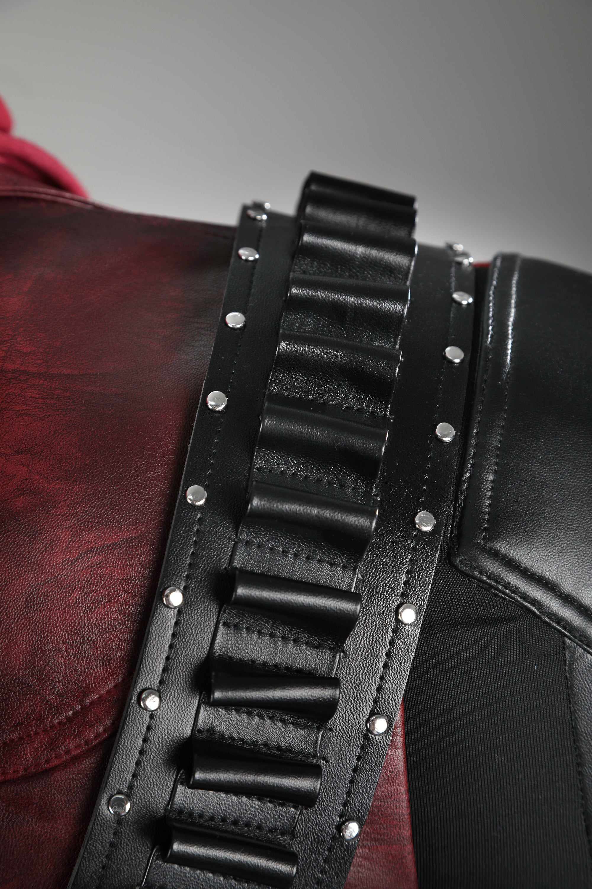 Inner Shirt: Washable vintage deer-pattern faux leather (non-elastic), four-way stretch sheepskin-pattern black faux leather (elastic), matte spandex fabric (elastic), single-layer cotton fabric.