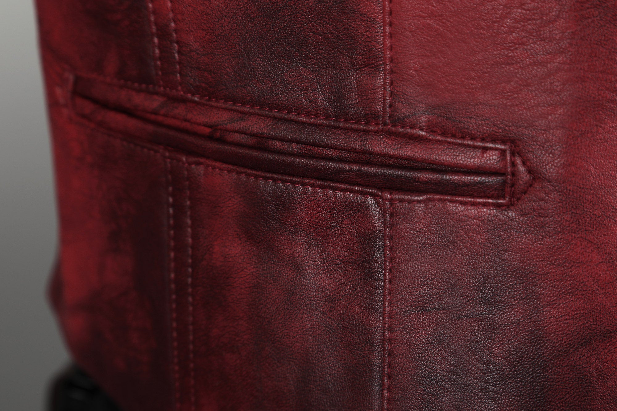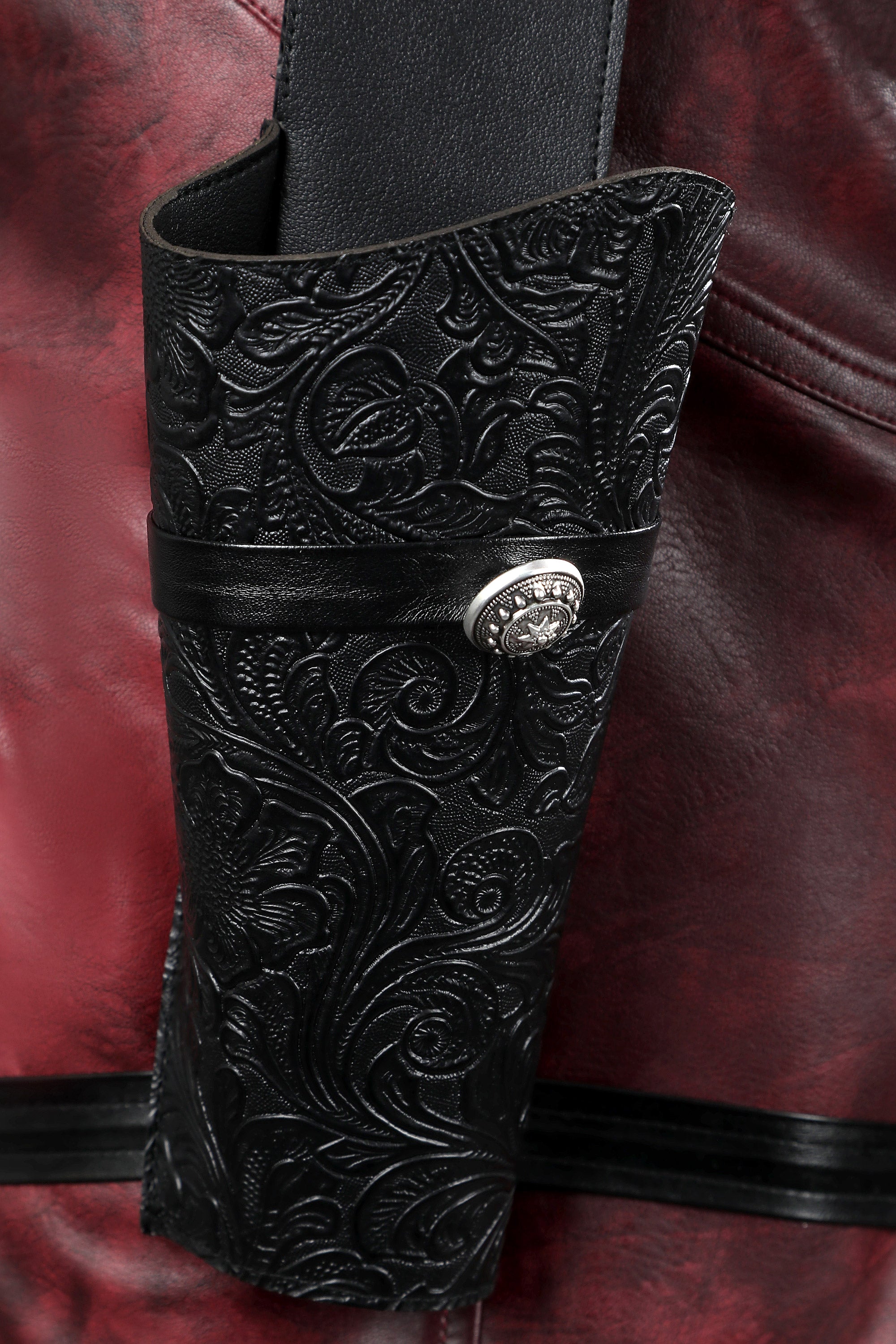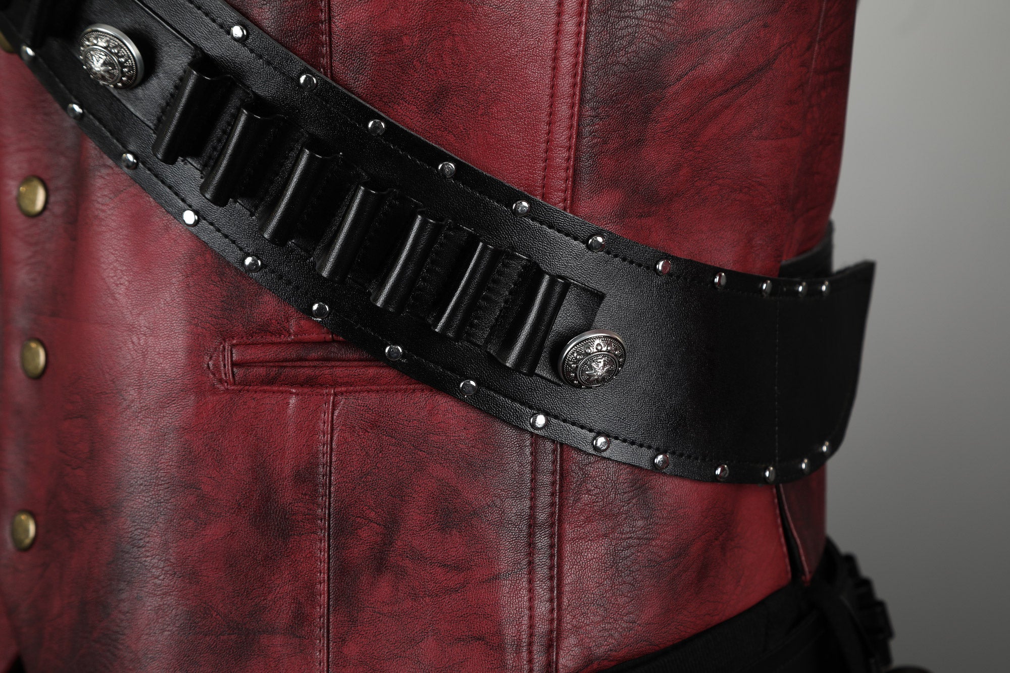 Outer Vest: Distressed PU leather (non-elastic), washable vintage deer-pattern faux leather (non-elastic), twill fabric (non-elastic).