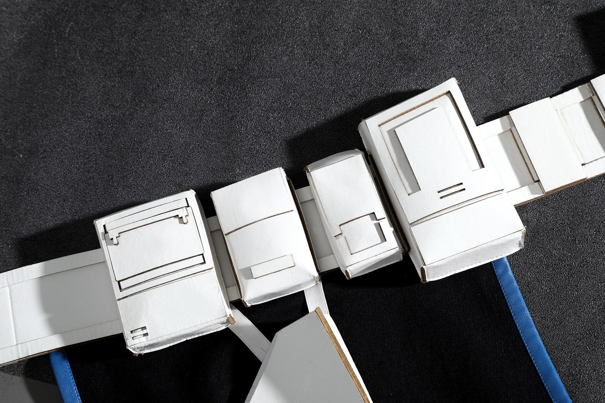• Belt and Outer Shirt: Made from herringbone-patterned fabric with slight elasticity and lambskin PU leather for durability.