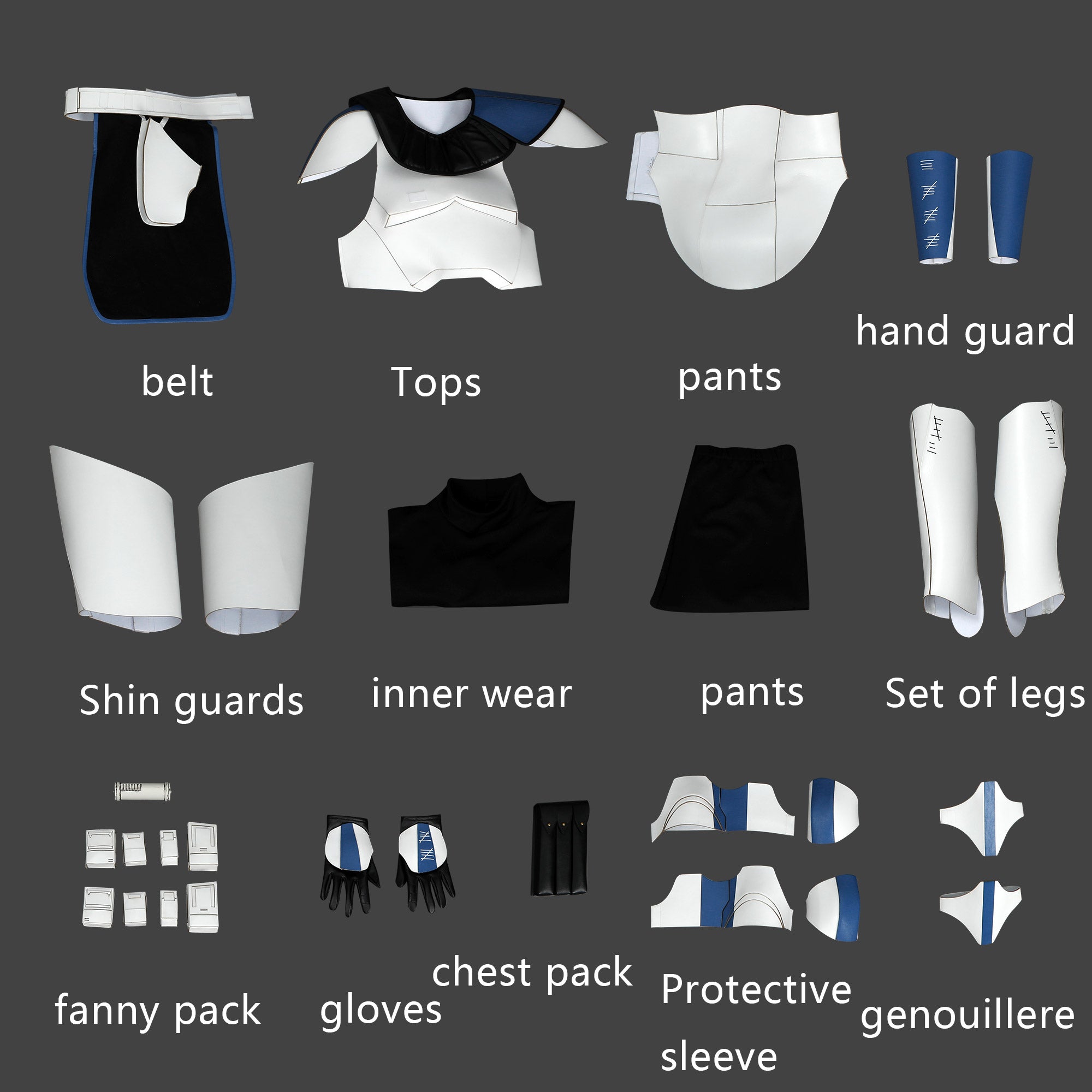 • Arm Guards, Shoulder Guards, and Knee Guards: Lightweight, durable materials for a screen-accurate look.