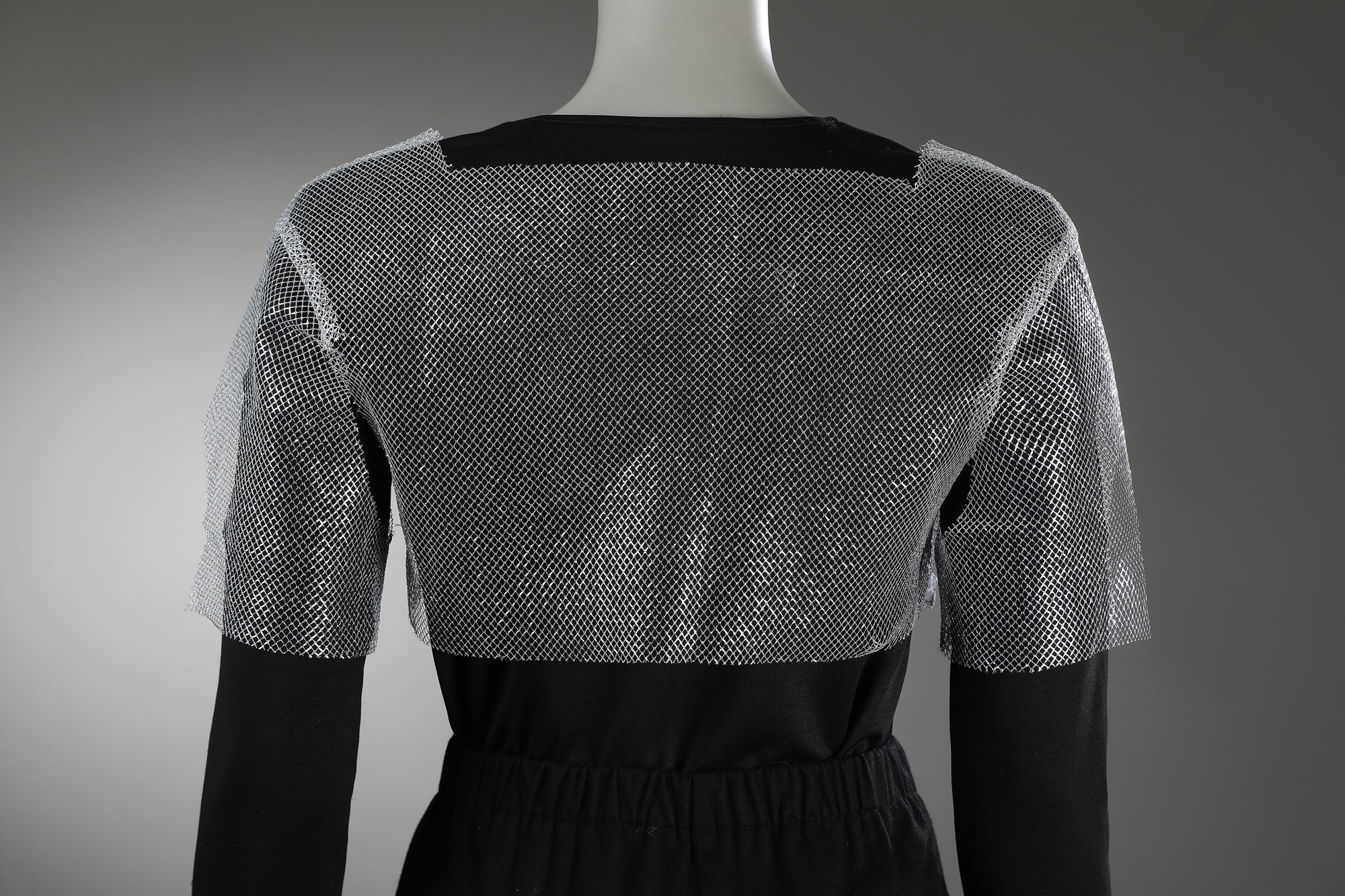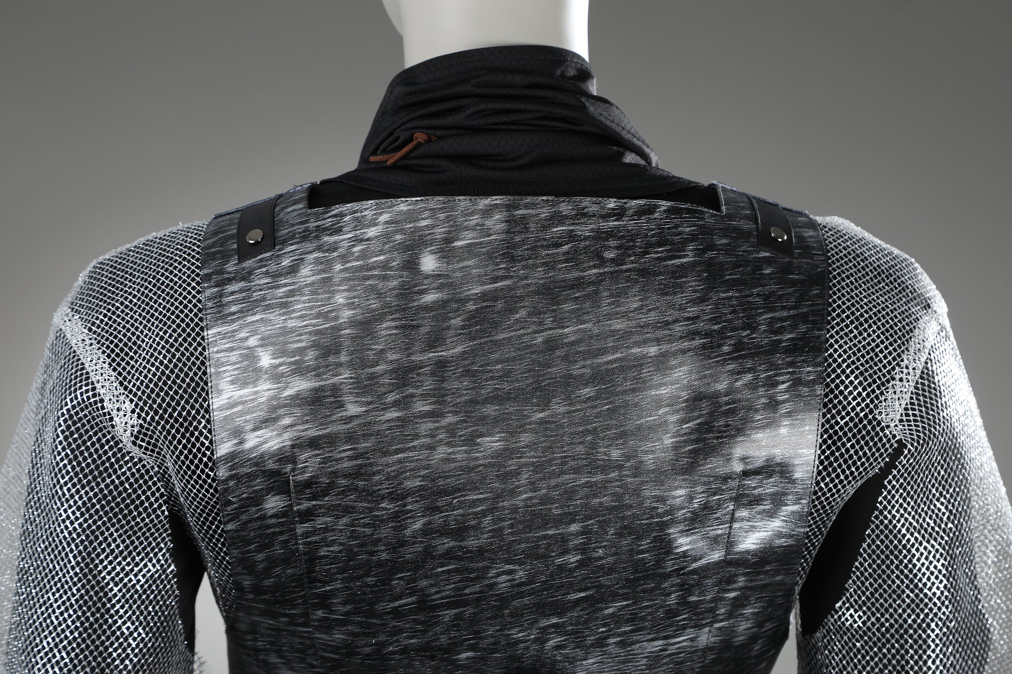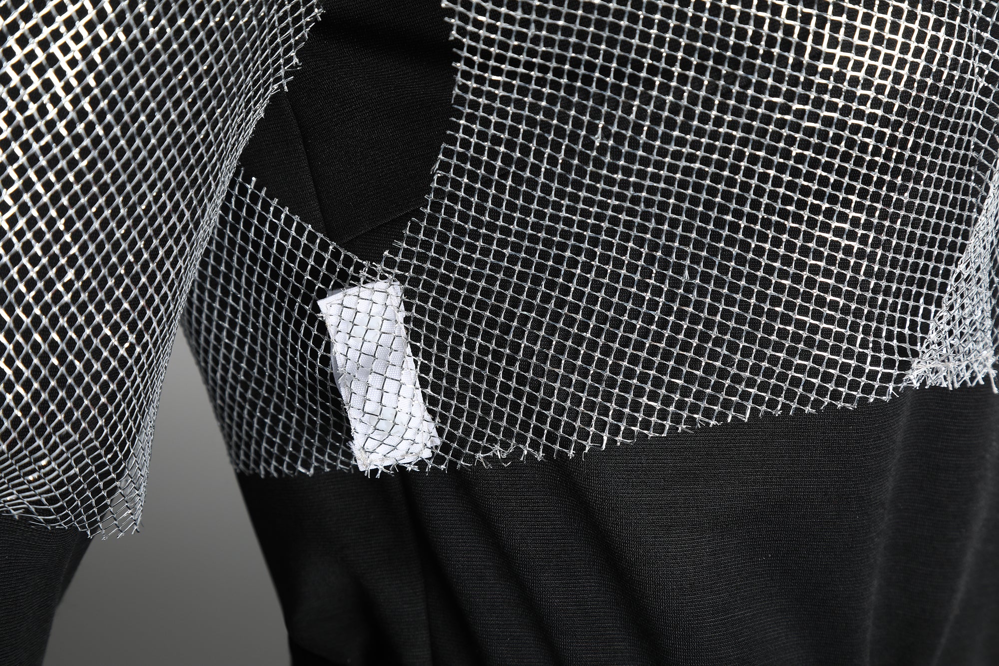• Top Shirt: Crafted from silver mesh fabric, non-elastic.
