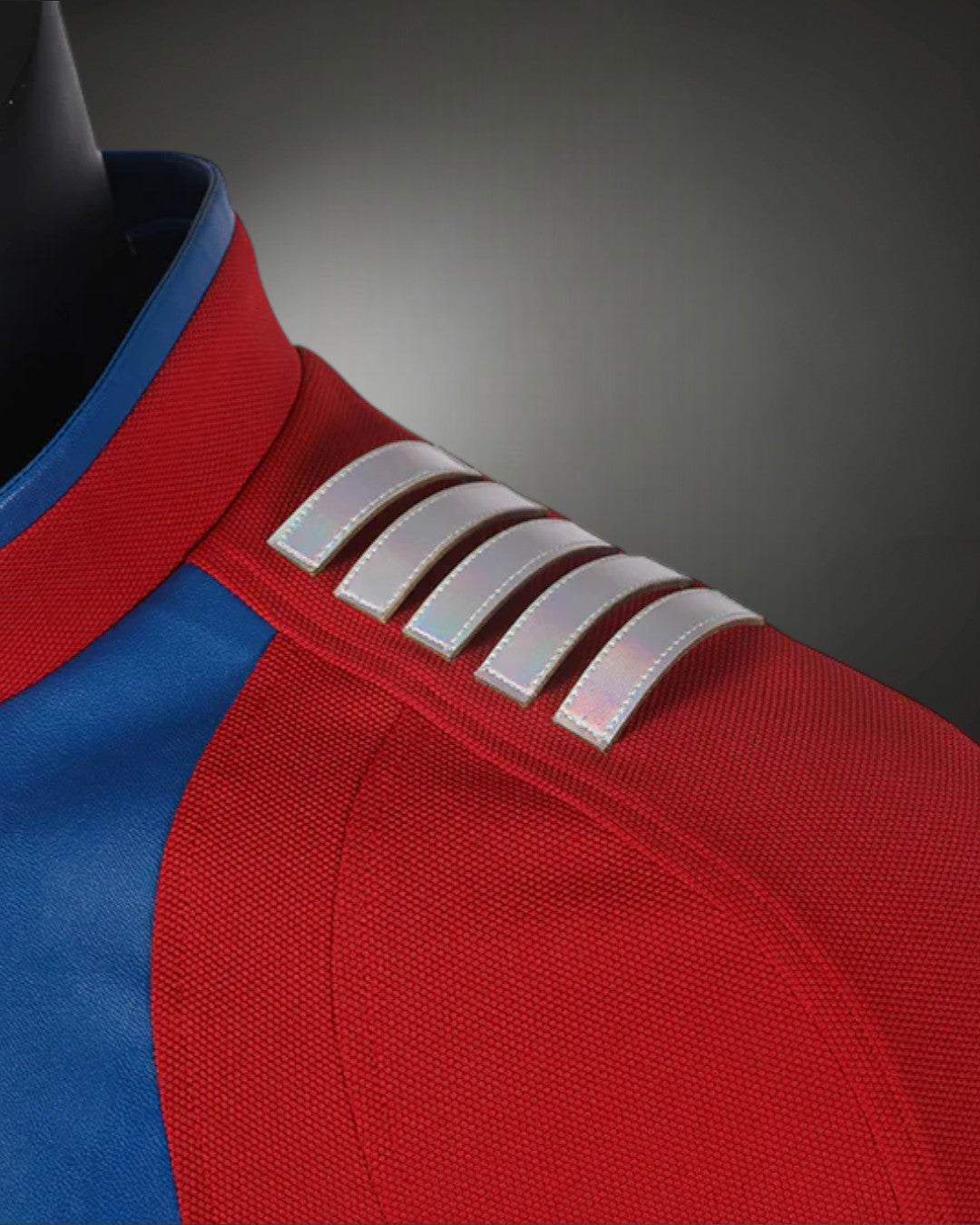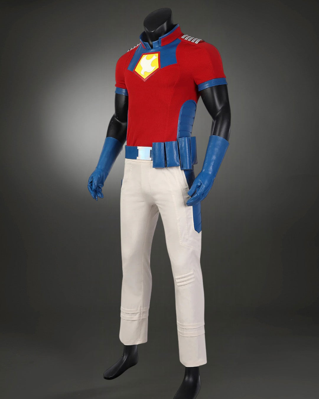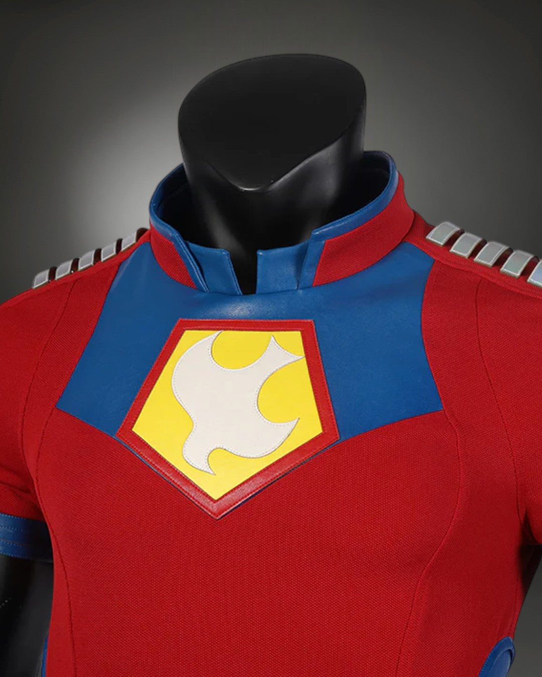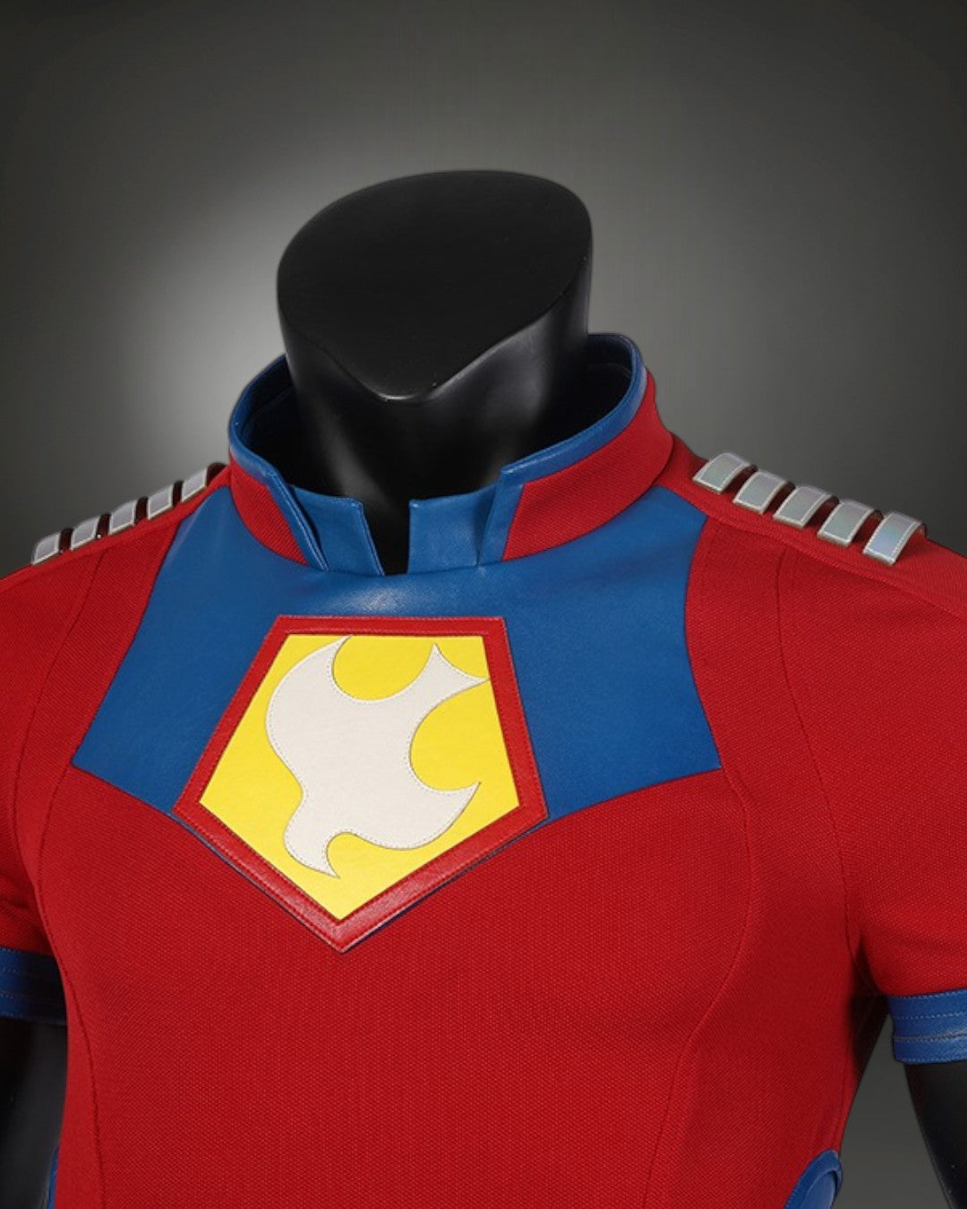 This life-size wearable costume is inspired by Peacemaker from The Suicide Squad 2, perfectly replicating the character's bold and iconic look.