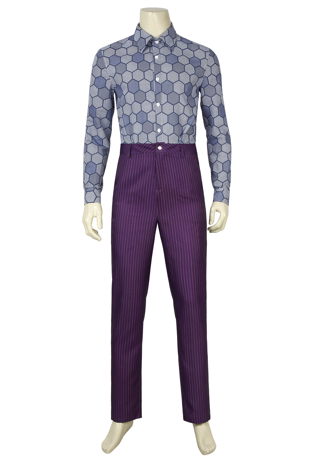 This costume is a detailed replica of the Joker’s iconic outfit from The Dark Knight. It captures the chaotic and eccentric style of one of DC’s most legendary villains.