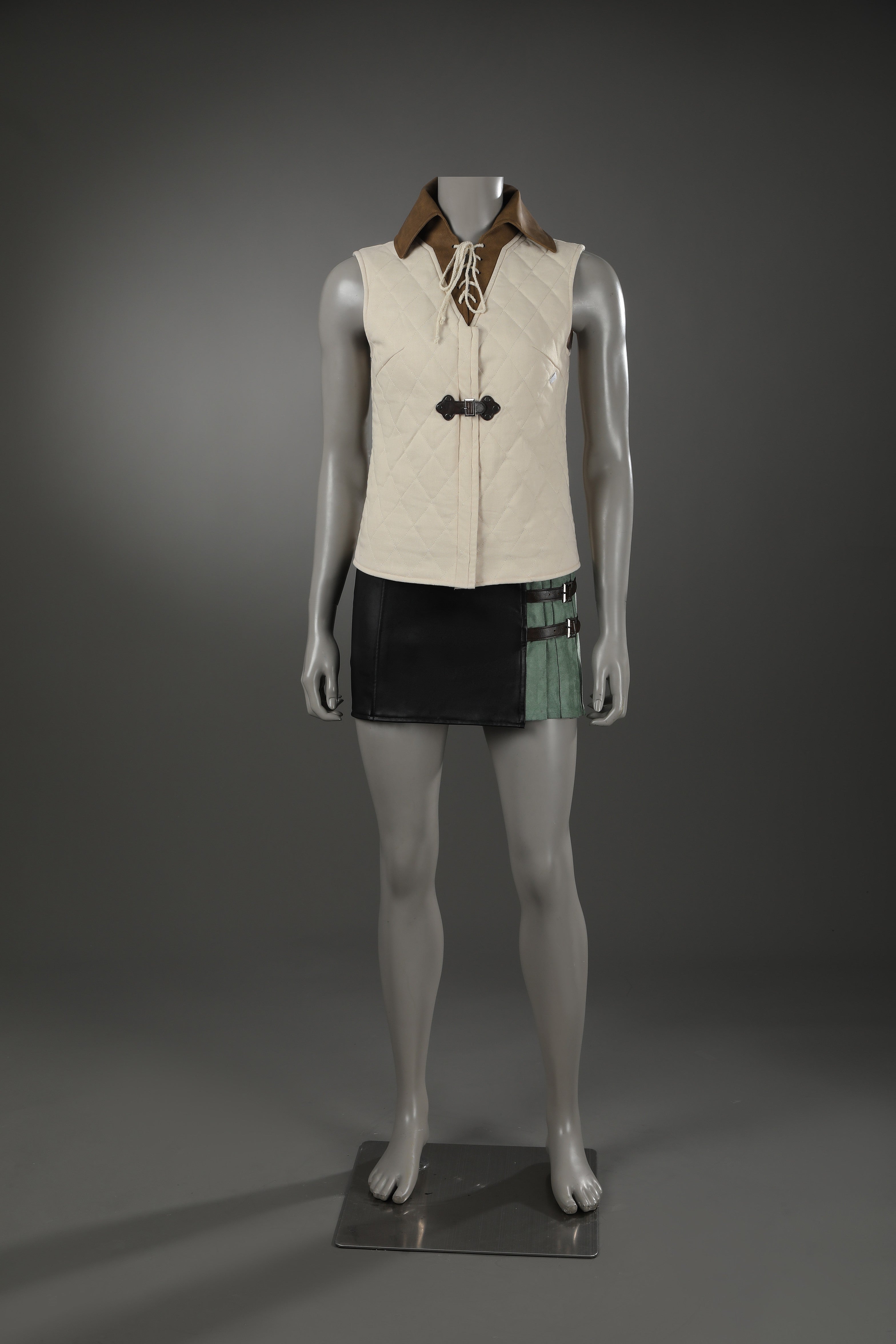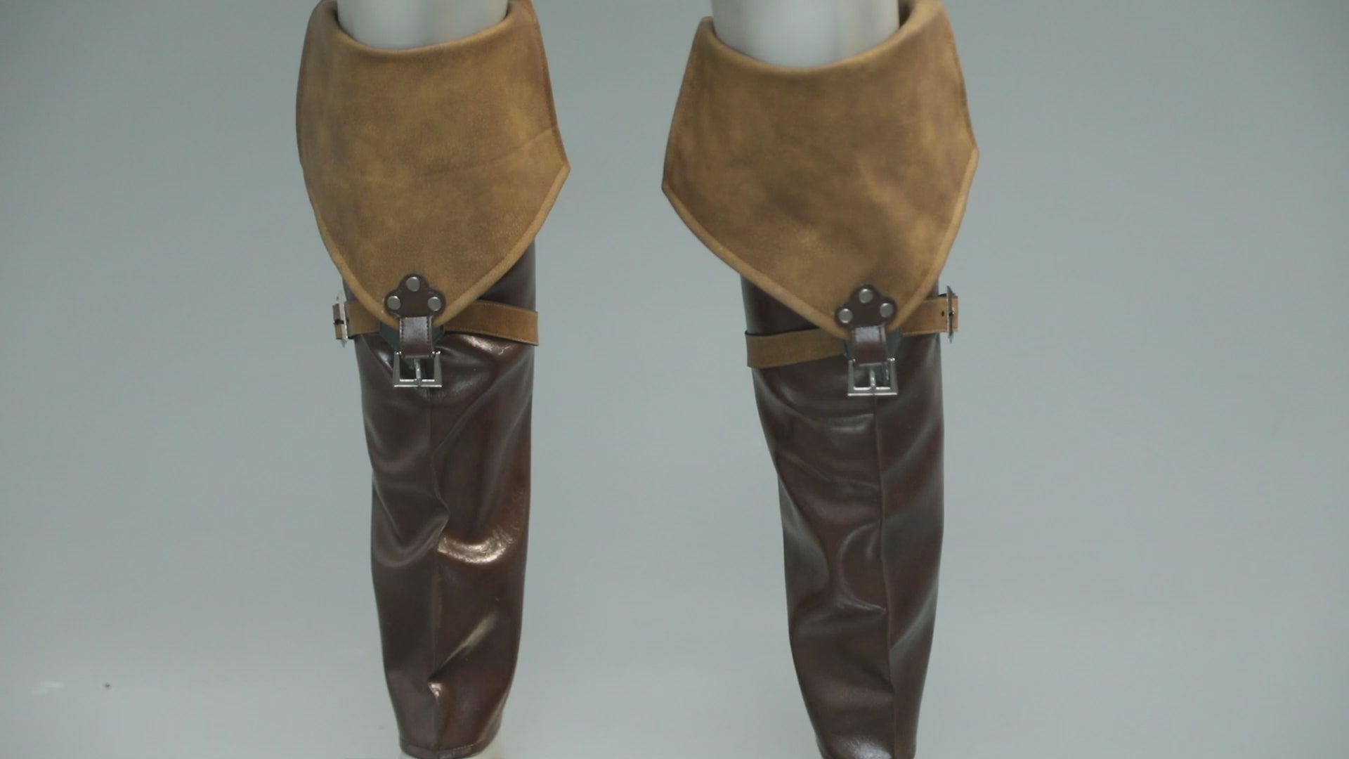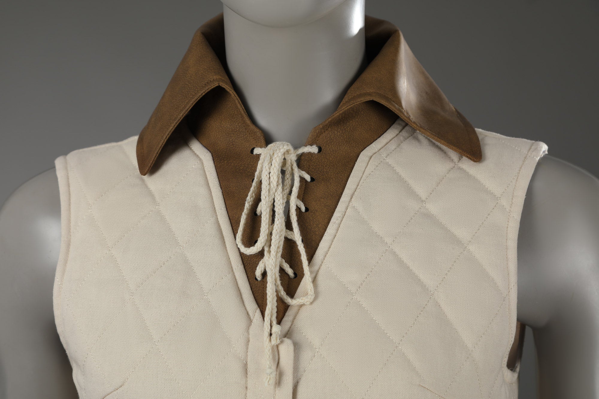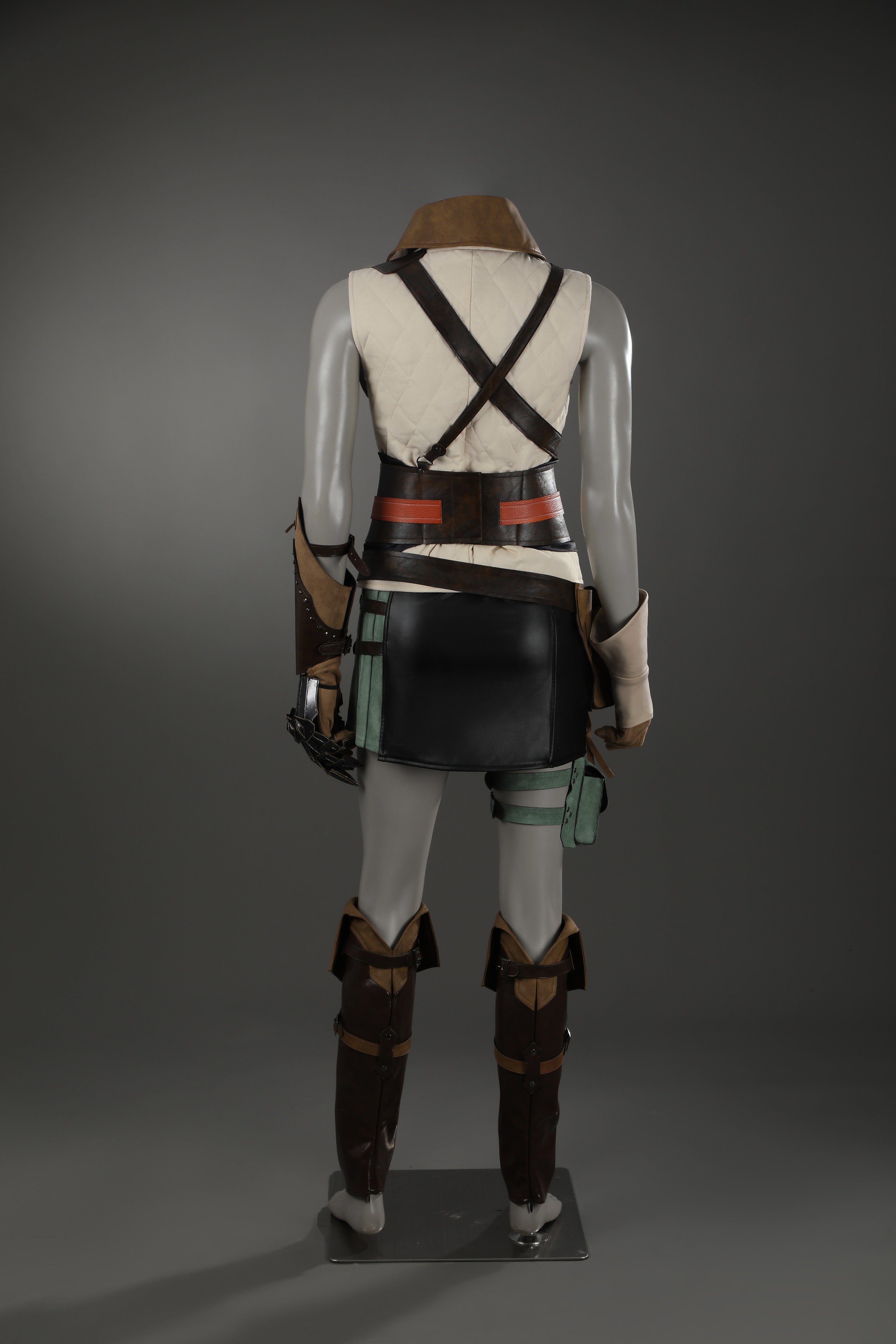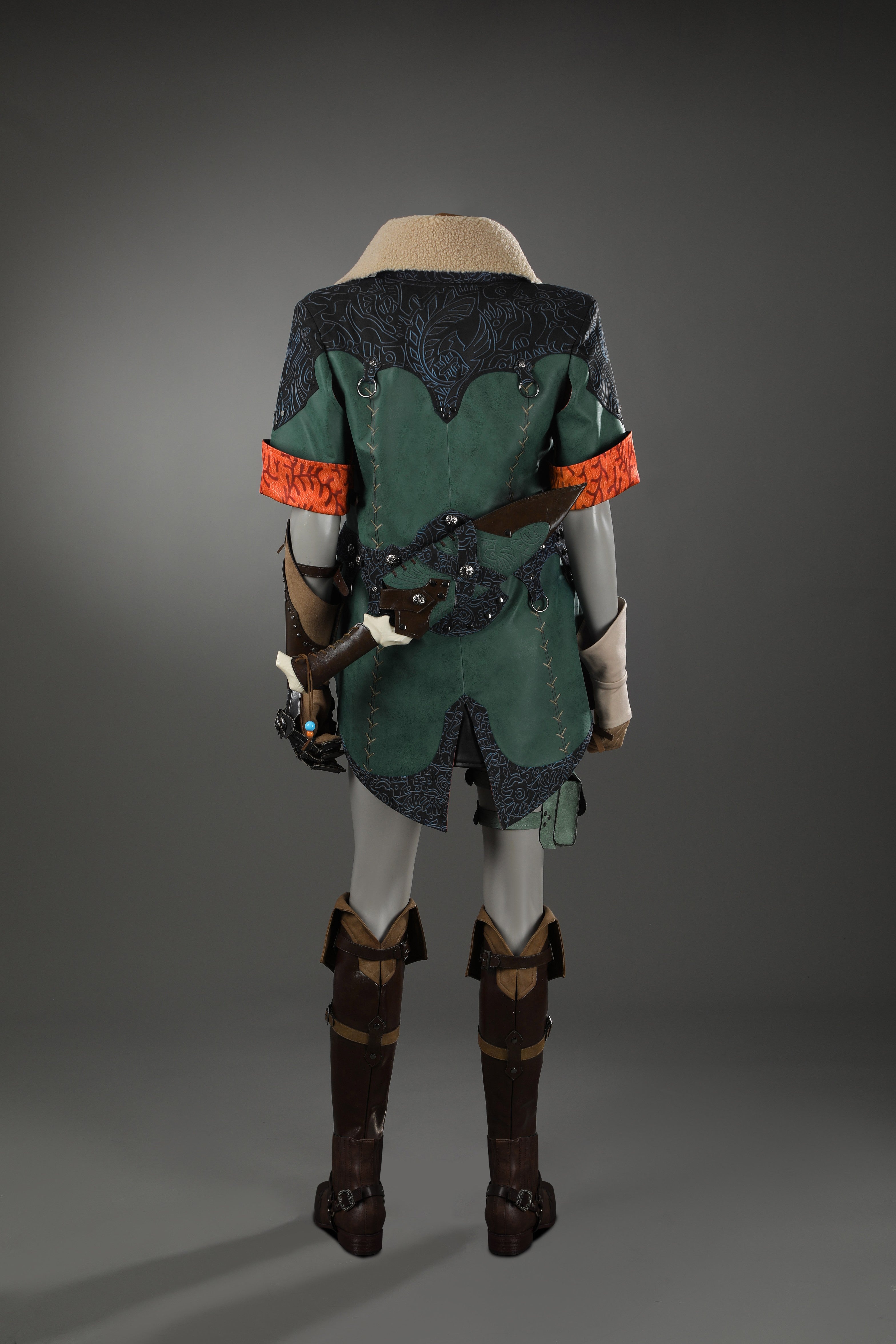 • Outer Coat: Durable faux leather with rustic detailing, highlighting a rugged, battle-ready style.