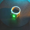 We use a cell battery. To turn on the light, place a magnet on the ring. To turn it off, simply reverse the operation.