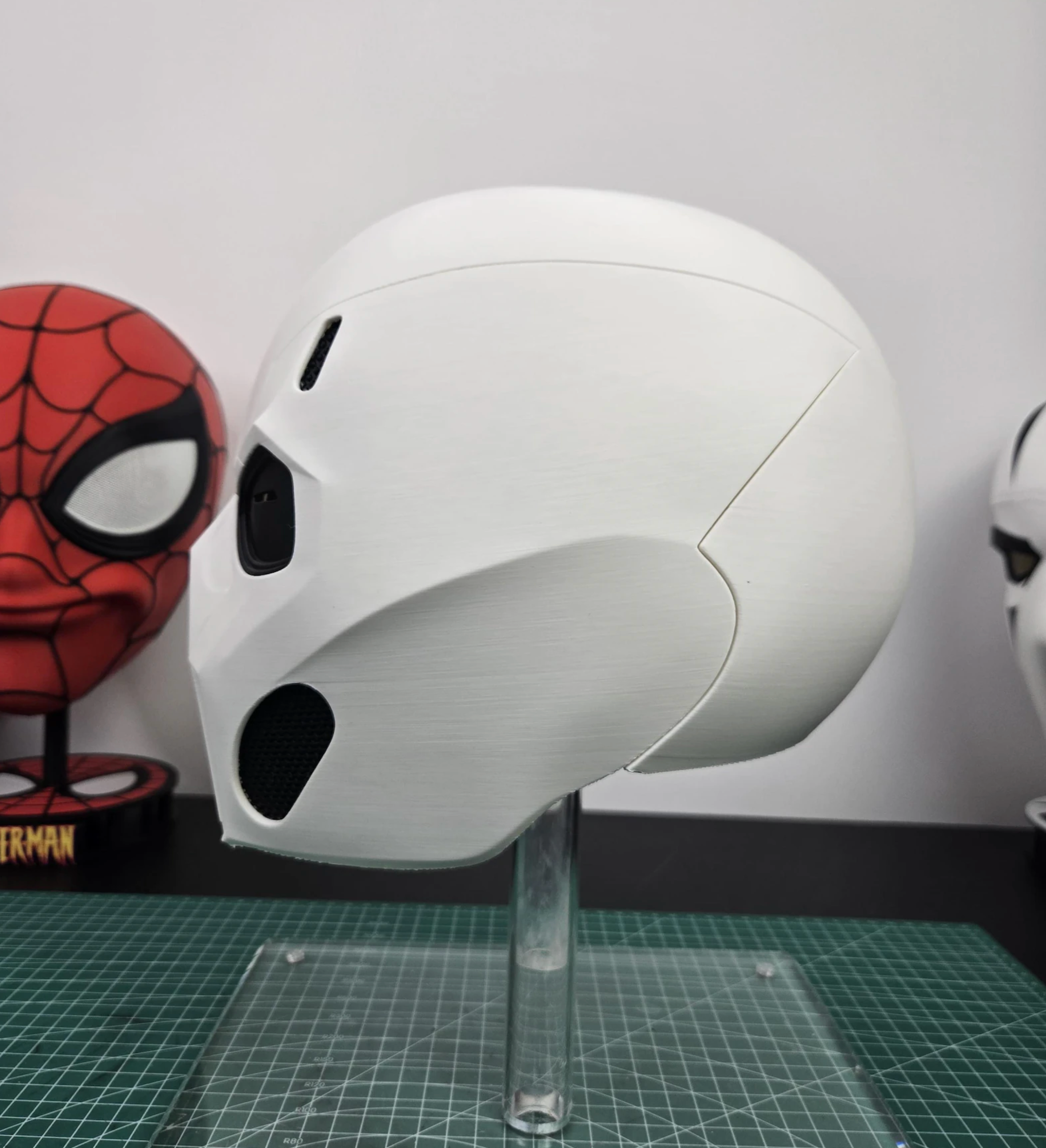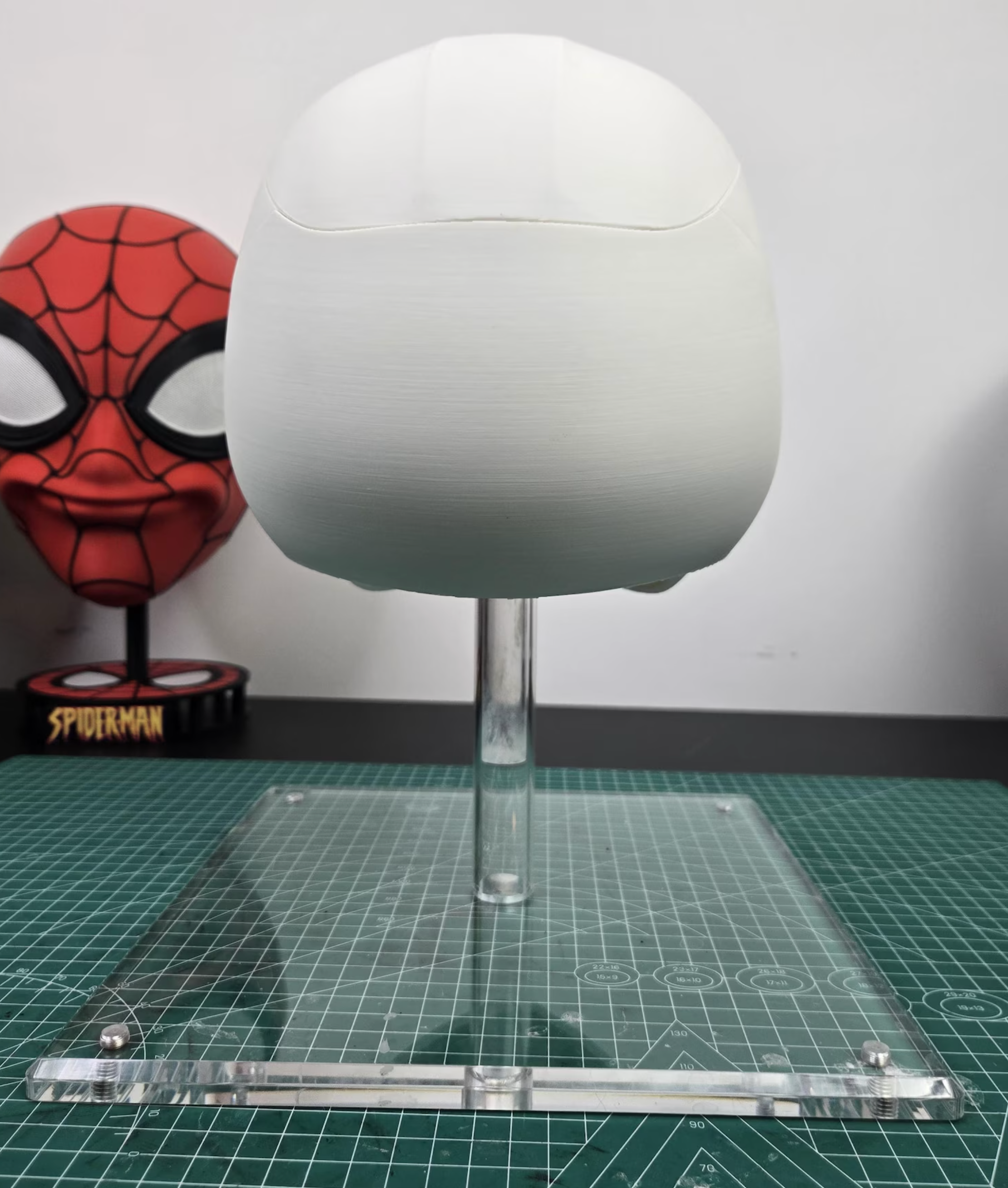 The helmet is life-sized and can be custom-made according to the customer's head size. The material used is PLA, which is printed. After the customer places an order, they can provide the circumference of their head, and we can tailor it to fit perfectly.