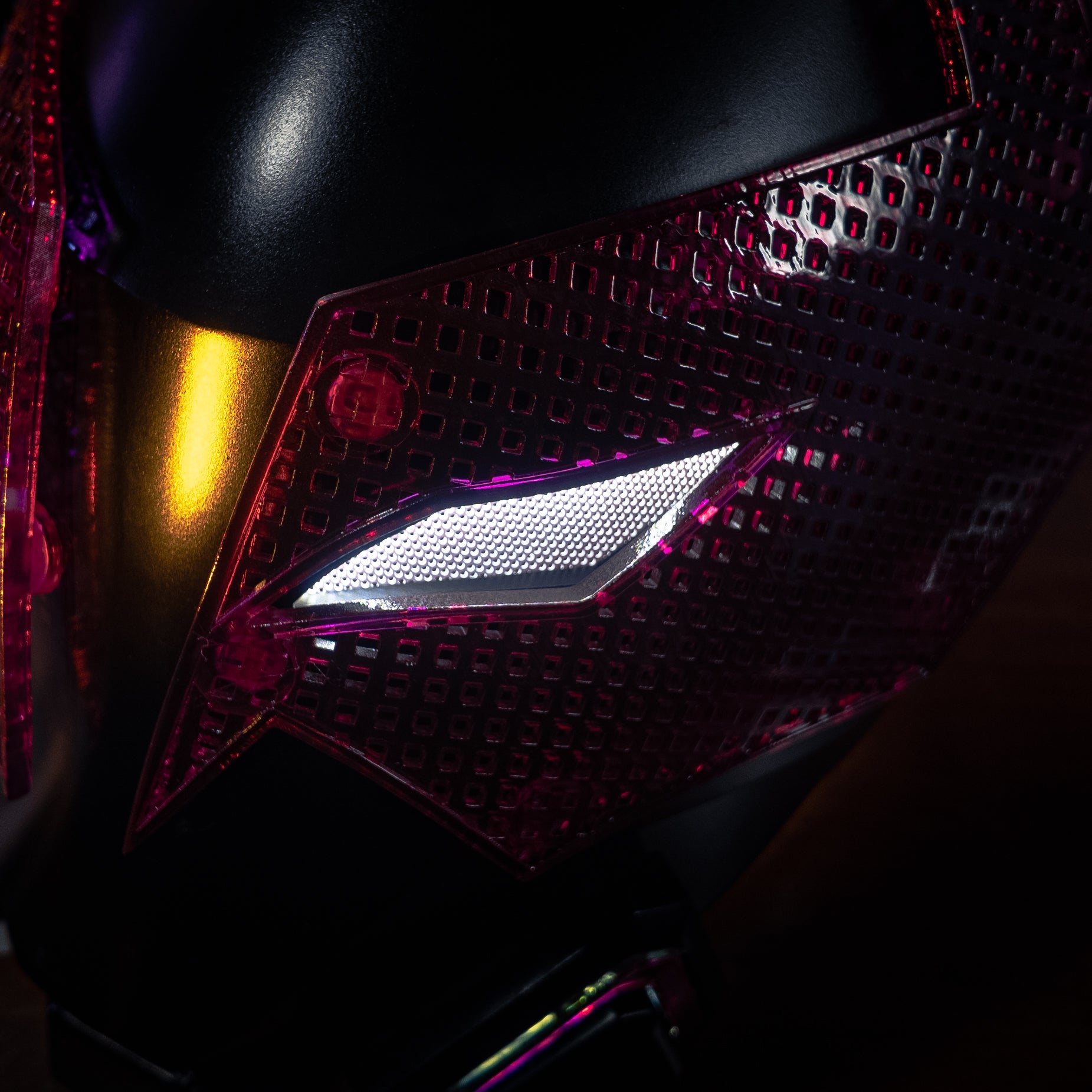 The helmet is made of resin using 3D printing and light-curing technology.
