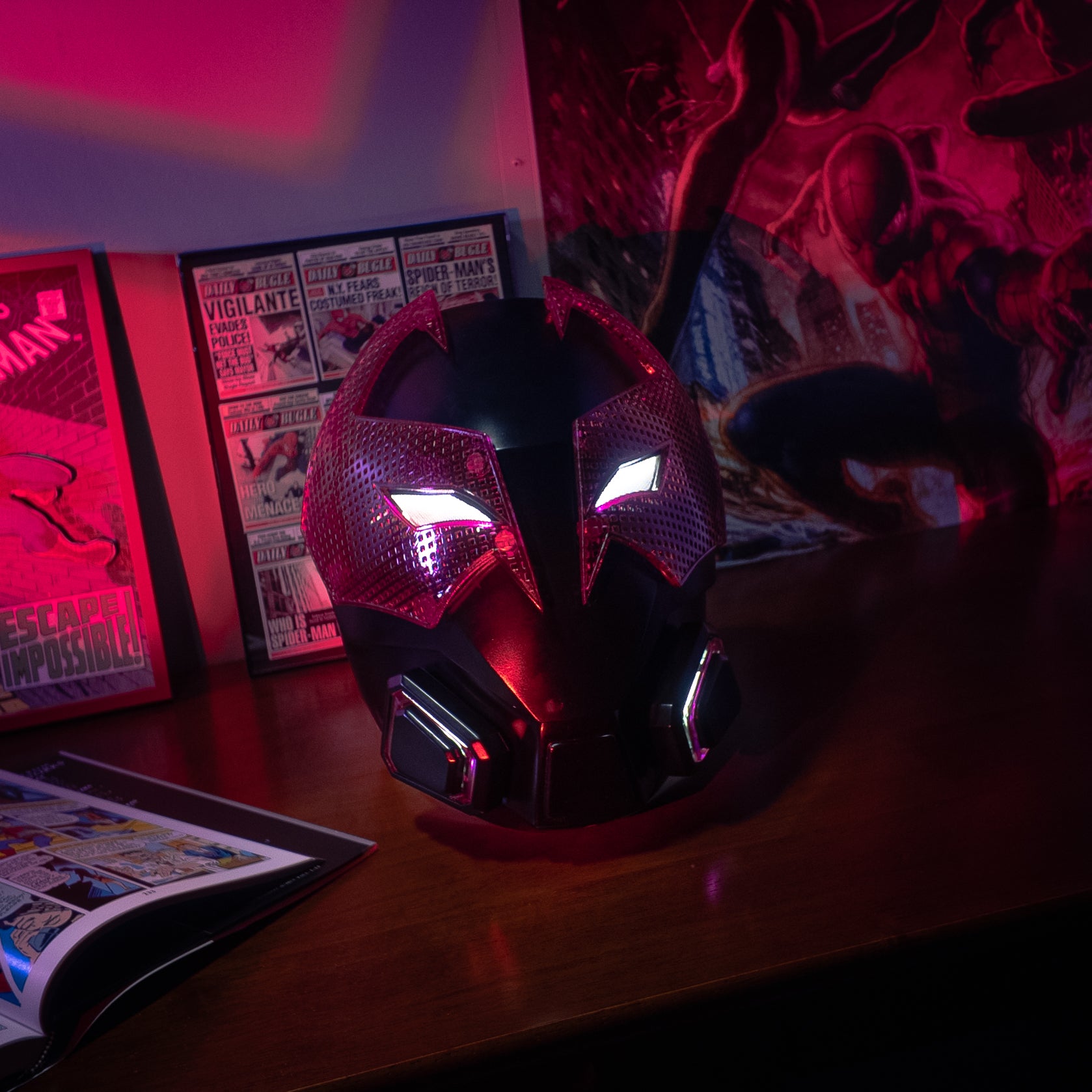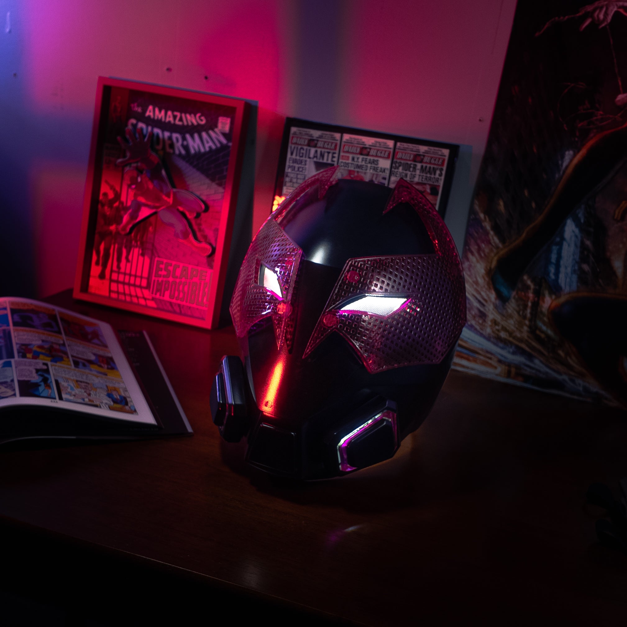 The helmet consists of two parts, which are connected using strong magnets.