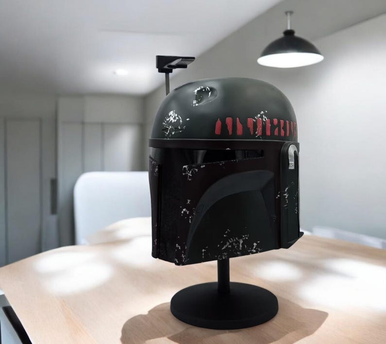 Own a piece of Star Wars history with this meticulously crafted 1:1 scale replica of Boba Fett's iconic helmet, as seen in The Book of Boba Fett series. Designed with exceptional attention to detail and made from premium materials, this helmet is a must-have for cosplayers, collectors, and fans of the galaxy's most feared bounty hunter.