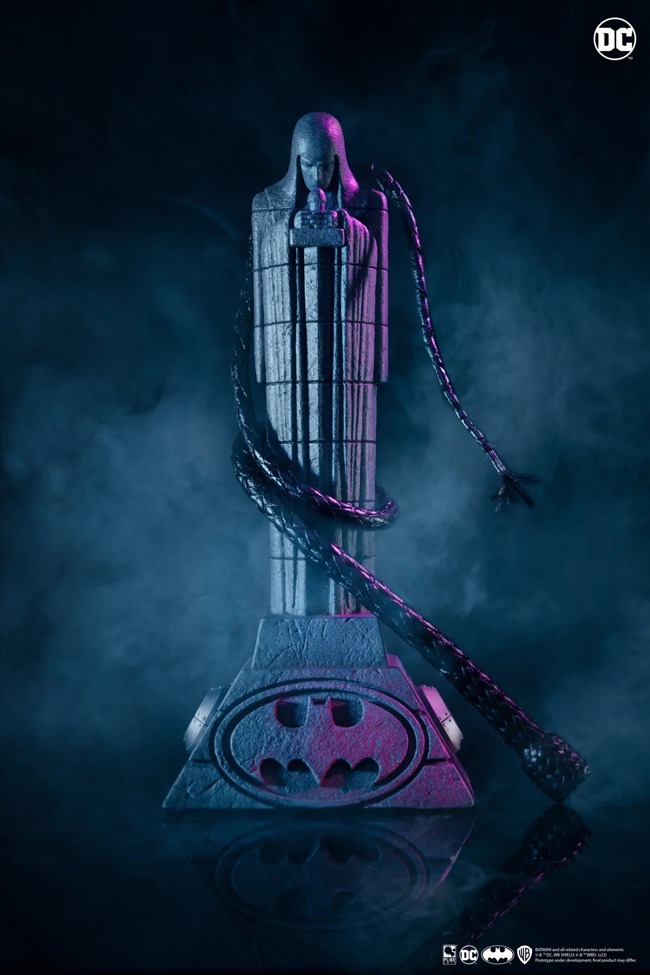 Mounted on a polyresin Gotham City mayoral house base, this 1:1 scale replica also includes a removable whip, making it the ultimate collectible for fans of this legendary antihero.