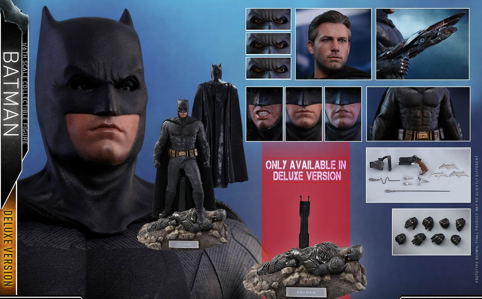 - One (1) newly developed interchangeable Bruce Wayne head sculpt capturing Ben Affleck’s movie-accurate facial expression with detailed skin texture