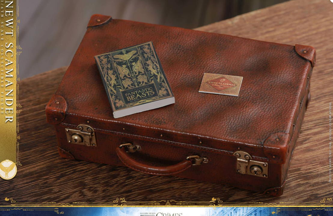 – One (1) highly decorated vintage briefcase (openable) with sticker and one (1) lenticular printing card displays two images (clothing and Newt’s room)