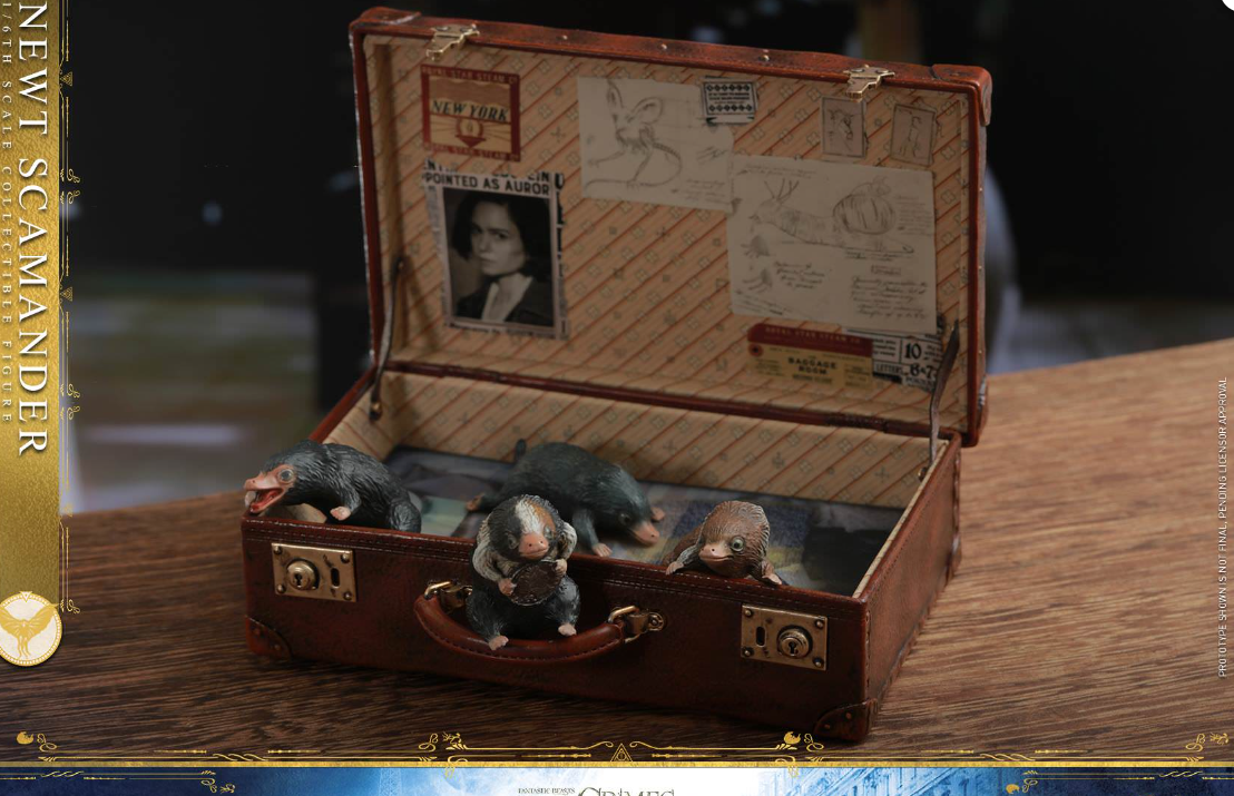 Meticulous crafted with delicate craftsmanship, the collectible figure features a newly developed head sculpt highlighting stunning likeness of Eddie Redmayne as the eccentric magizoologist Newt Scamander in the movie, a set of bespoke suit and coat in charcoal gray perfectly demonstrates the formal styles in the classic way, multiple leading magical creatures and accessories include Pickett the Bowtuckle, Baby Nifflers, a wand, a Nicolas Flamel’s card, a vintage briefcase, and a book which is written by…Newt himself!