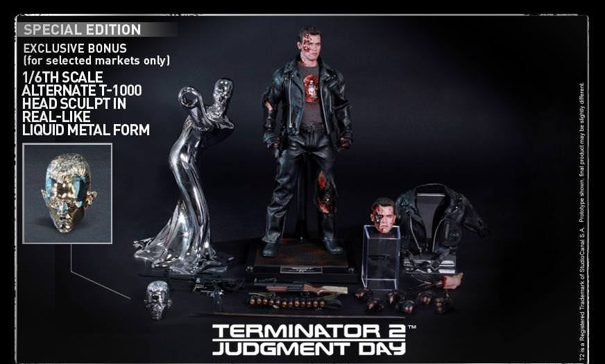 - One (1) 1/6th scale alternate T-1000 head sculpt in real-like liquid metal form