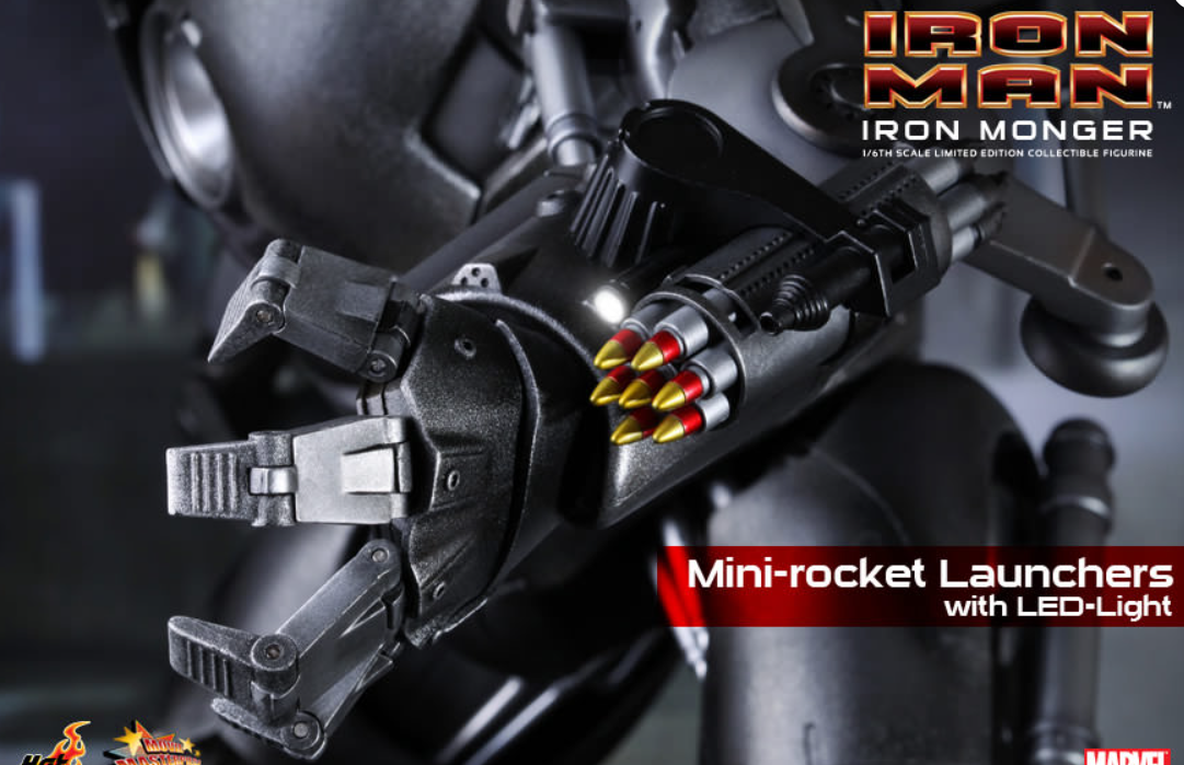 Hot Toys is proud to present the 1/6th scale Iron Monger Limited Edition Collectible Figurine from the Iron Man movie. The movie-accurate Iron Monger collectible is highly detailed, specially crafted based on the image in the movie.