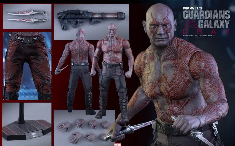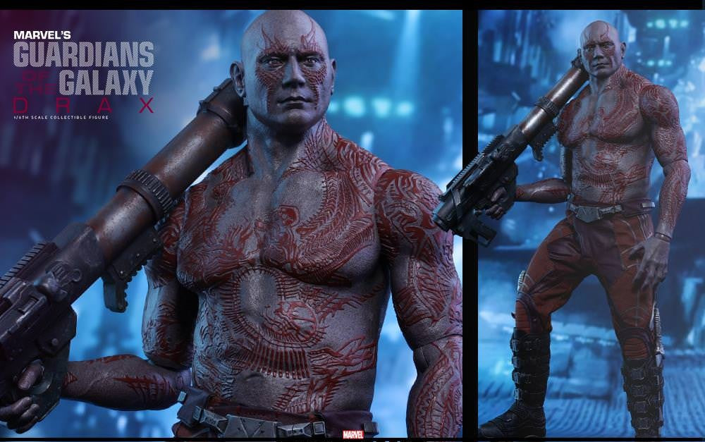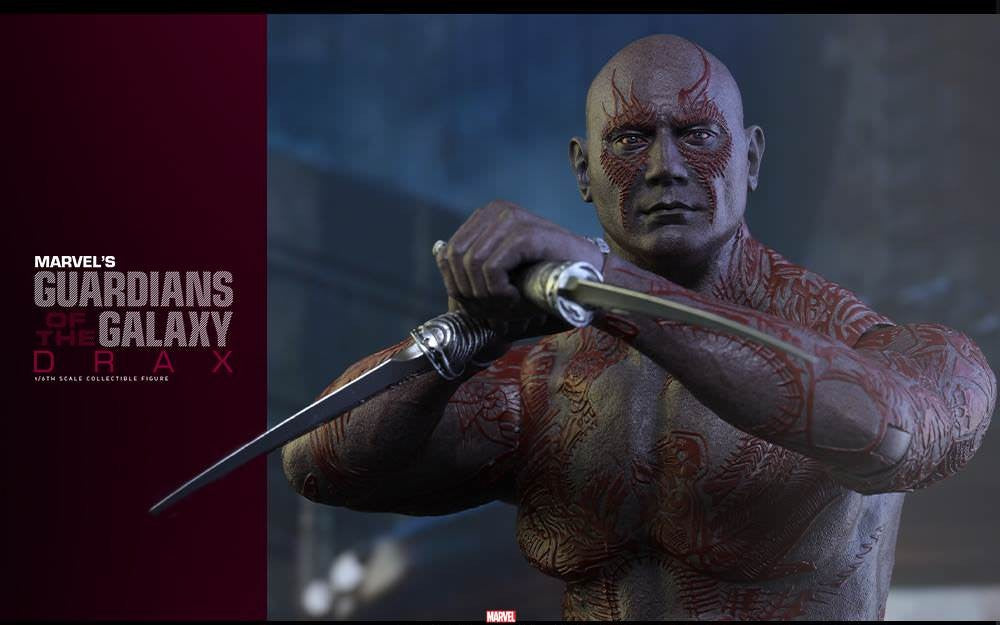 – Newly developed head sculpt with authentic and detailed likeness of Dave Bautista as Drax the Destroyer in Guardians of the Galaxy
