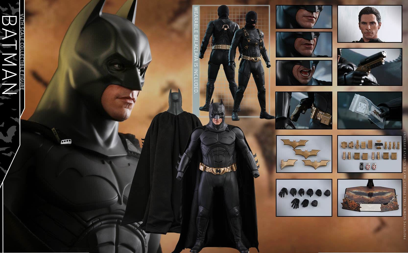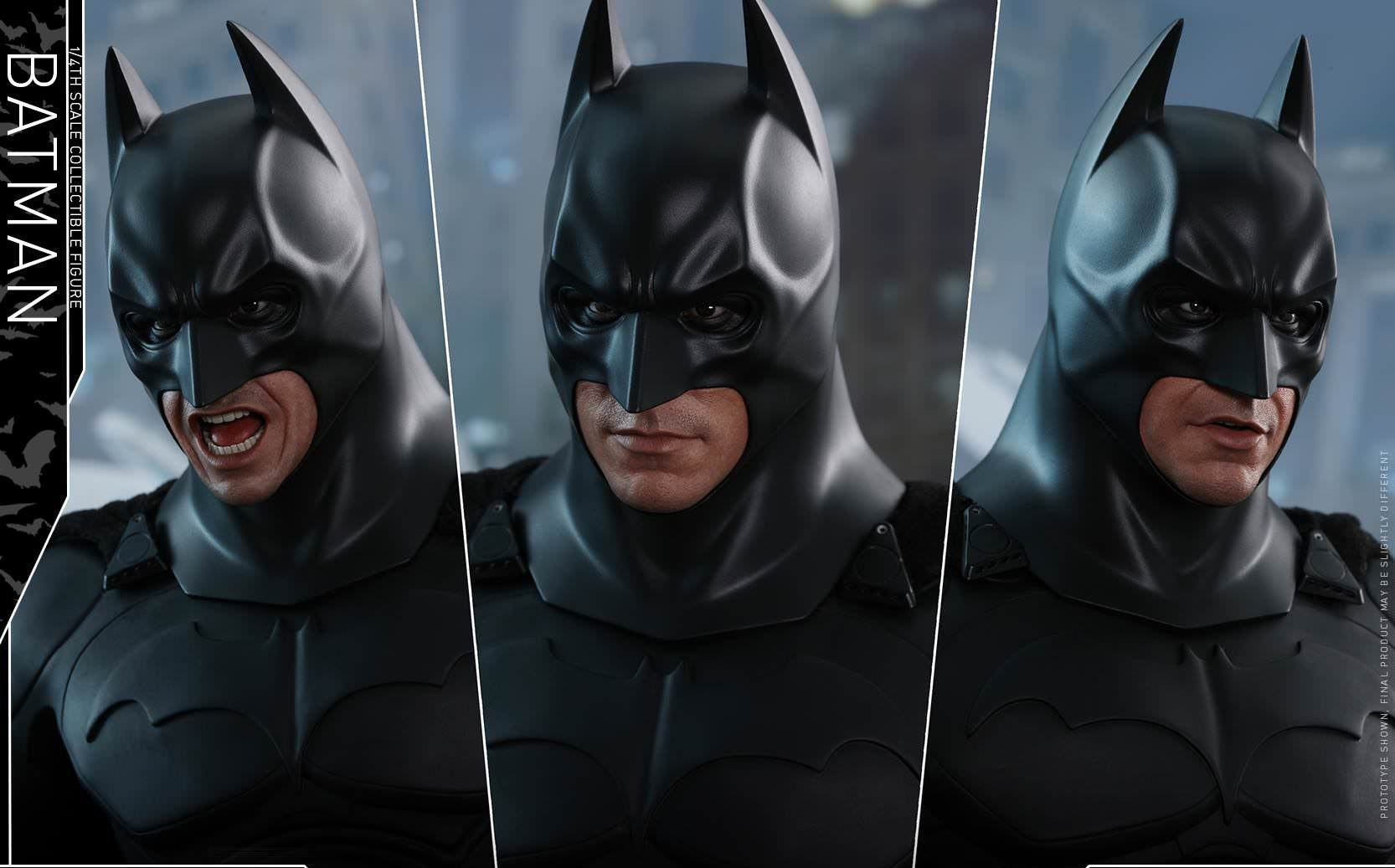 – One (1) interchangeable Batman head with three (3) interchangeable lower part of faces capturing Christian Bale’s facial expressions