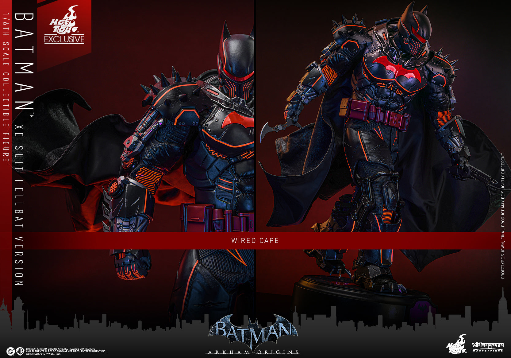 - Authentic and detailed likeness of Batman wearing XE Suit Hellbat Version inspired by Batman: Arkham Origins story DLC “Cold, Cold Heart” and DC Comics