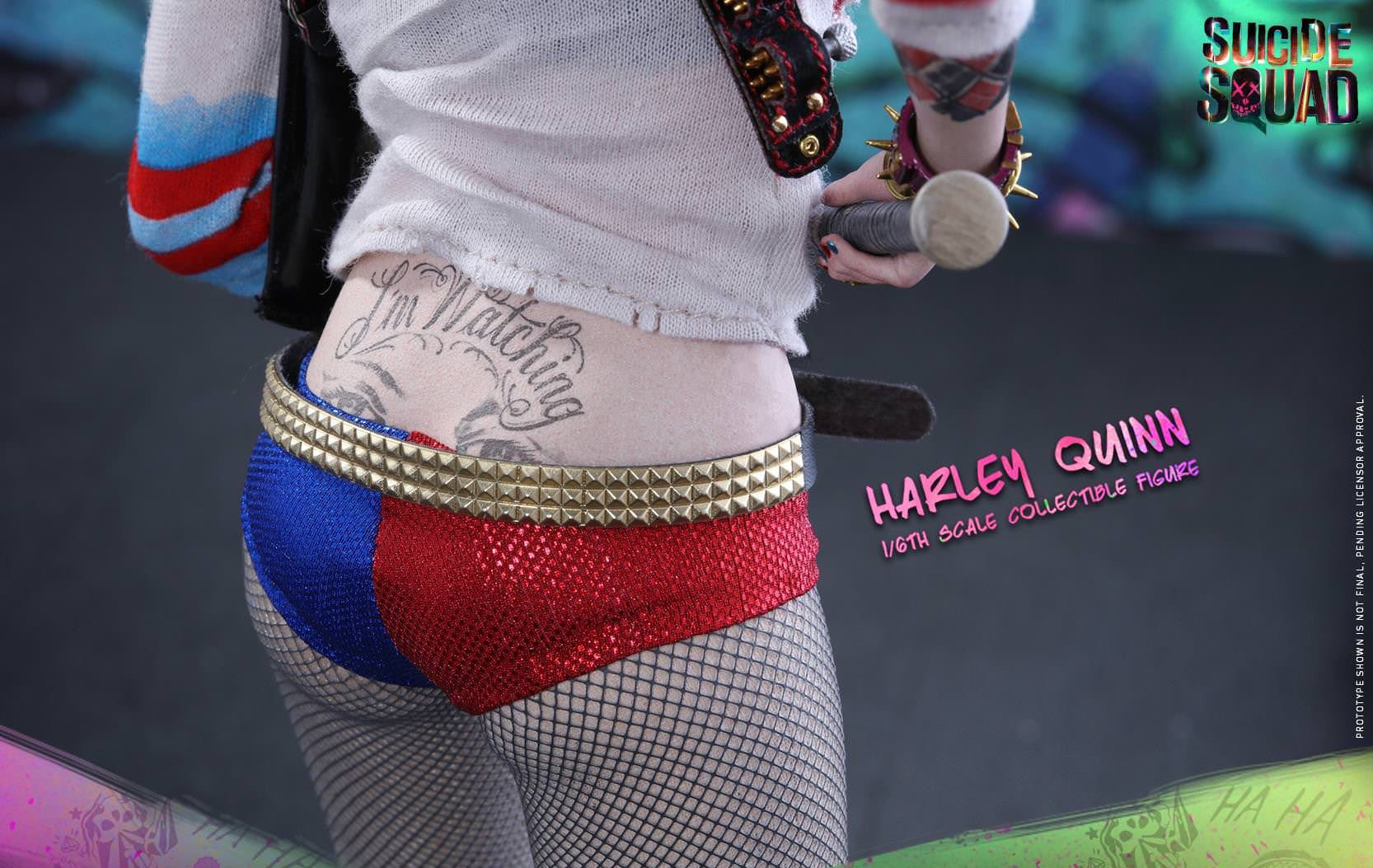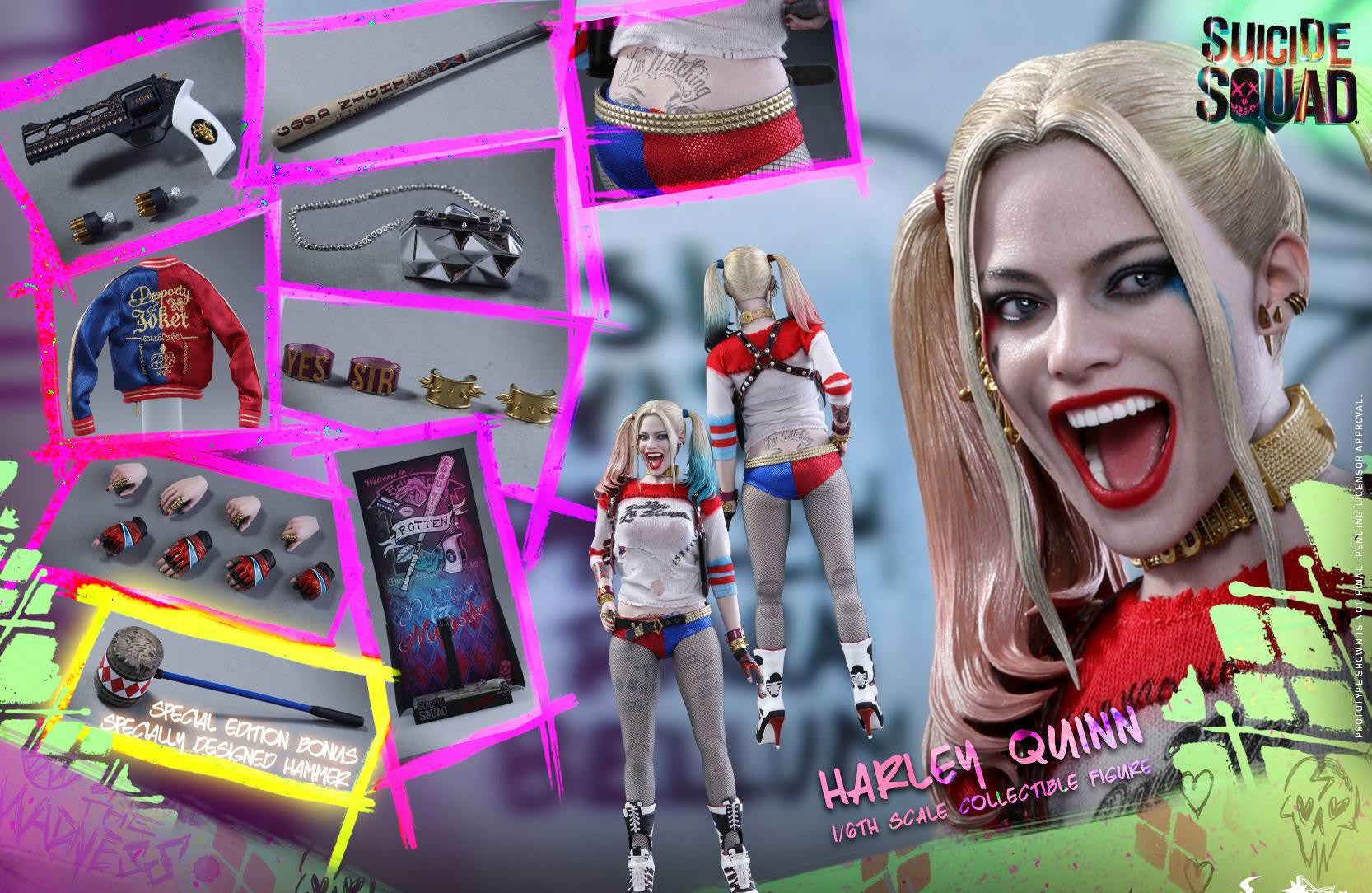 - Newly sculpted head sculpt with authentic and detailed likeness of Margot Robbie in a laughing expression as Harley Quinn in Suicide Squad