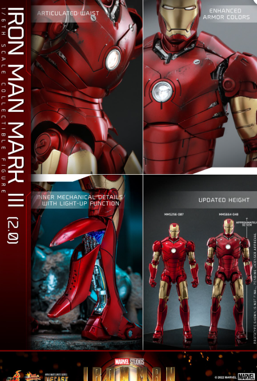 The 1/6th scale Iron Man Mark III (2.0) Collectible Figure specially features: