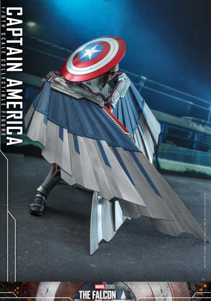 Today, Hot Toys is very excited to introduce the new Captain America as a 1/6th scale collectible figure in the completely new outfit and highly poseable mechanical wings that allows a great range of motion to recreate stunning scenes from the highly-acclaimed series.
