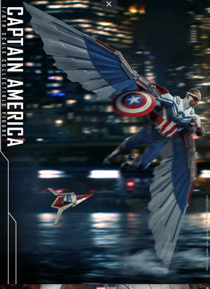 Masterfully crafted based on the appearance of Anthony Mackie as the new Captain America in The Falcon and the Winter Soldier series finale, the figure features a newly developed head with face gaiter and goggles; a newly designed tactic outfit in blue, white and red color scheme with a Star emblem; Captain America’s iconic shield; a flight back pack, a Redwing drone, and detailed recreation of the massive wings measures approximately 80cm wide, designed with extended articulation for incredible action scenes.