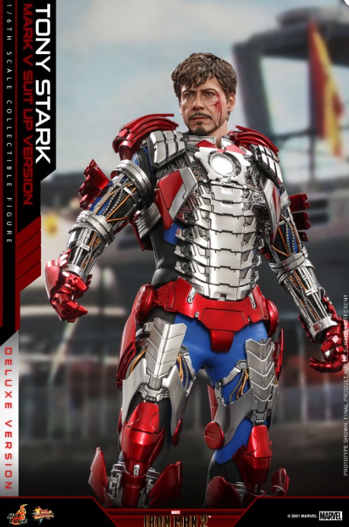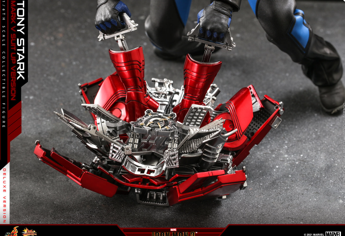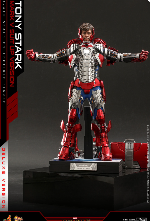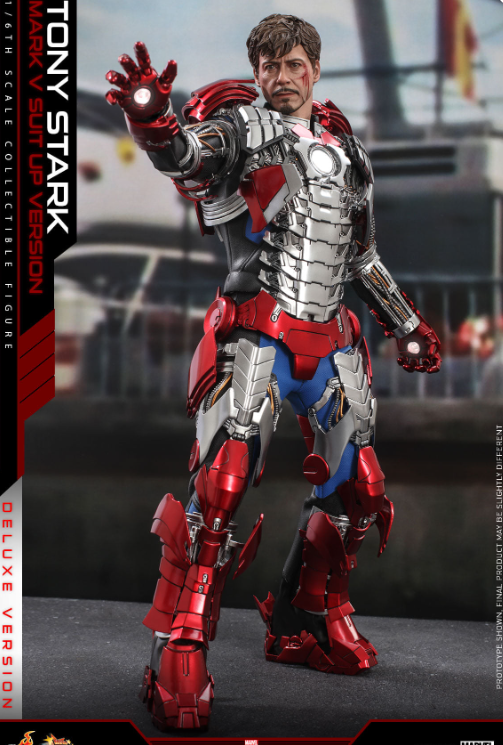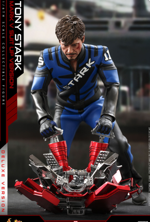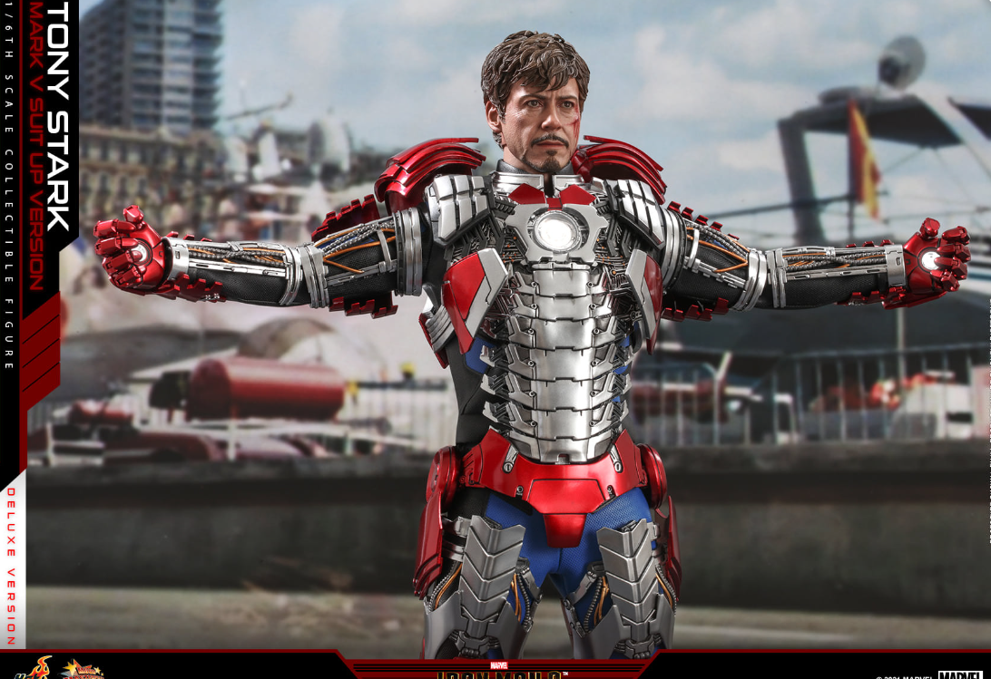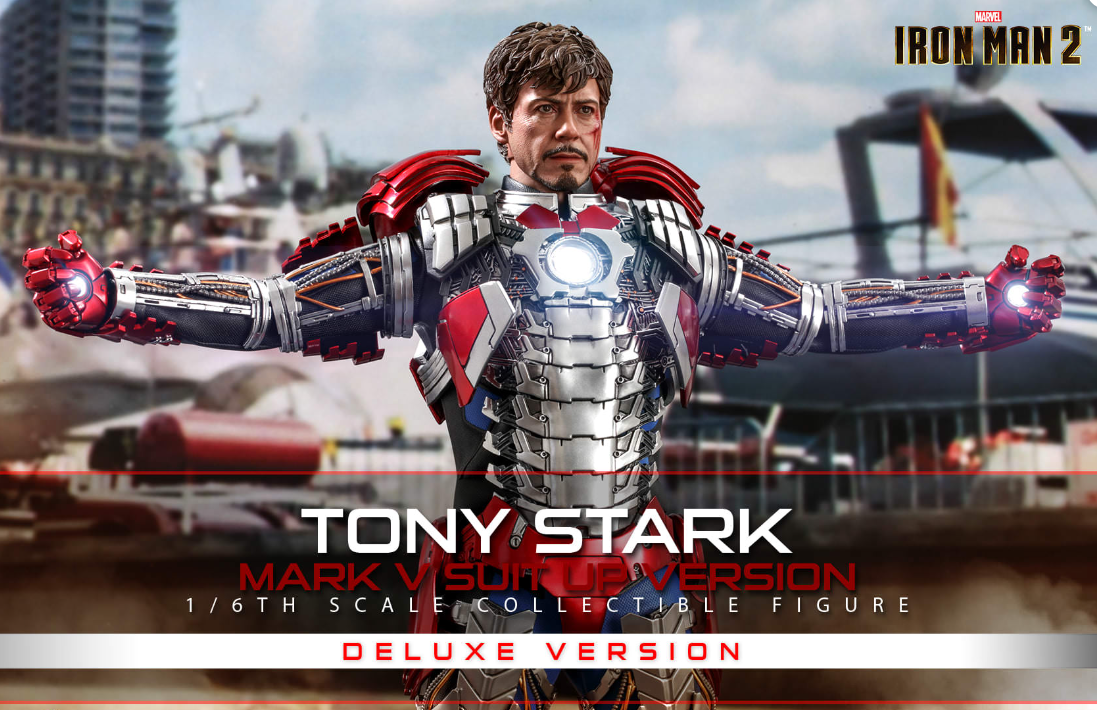 The 1/6th scale Tony Stark (Mark V Suit up Version) Collectible Figure (Deluxe Version) specially features: