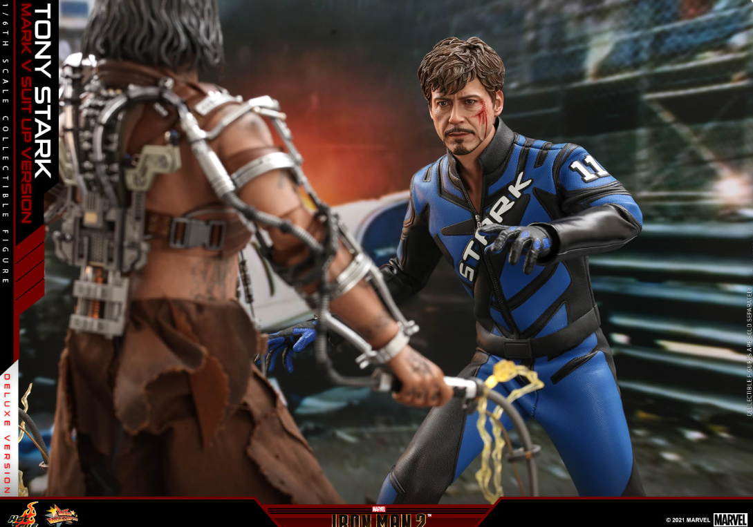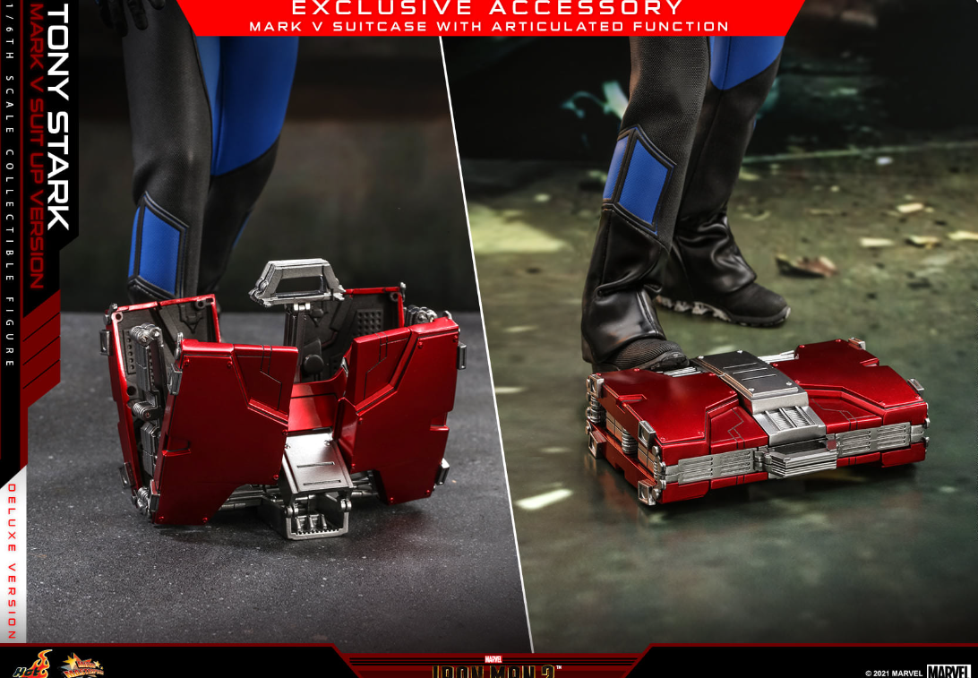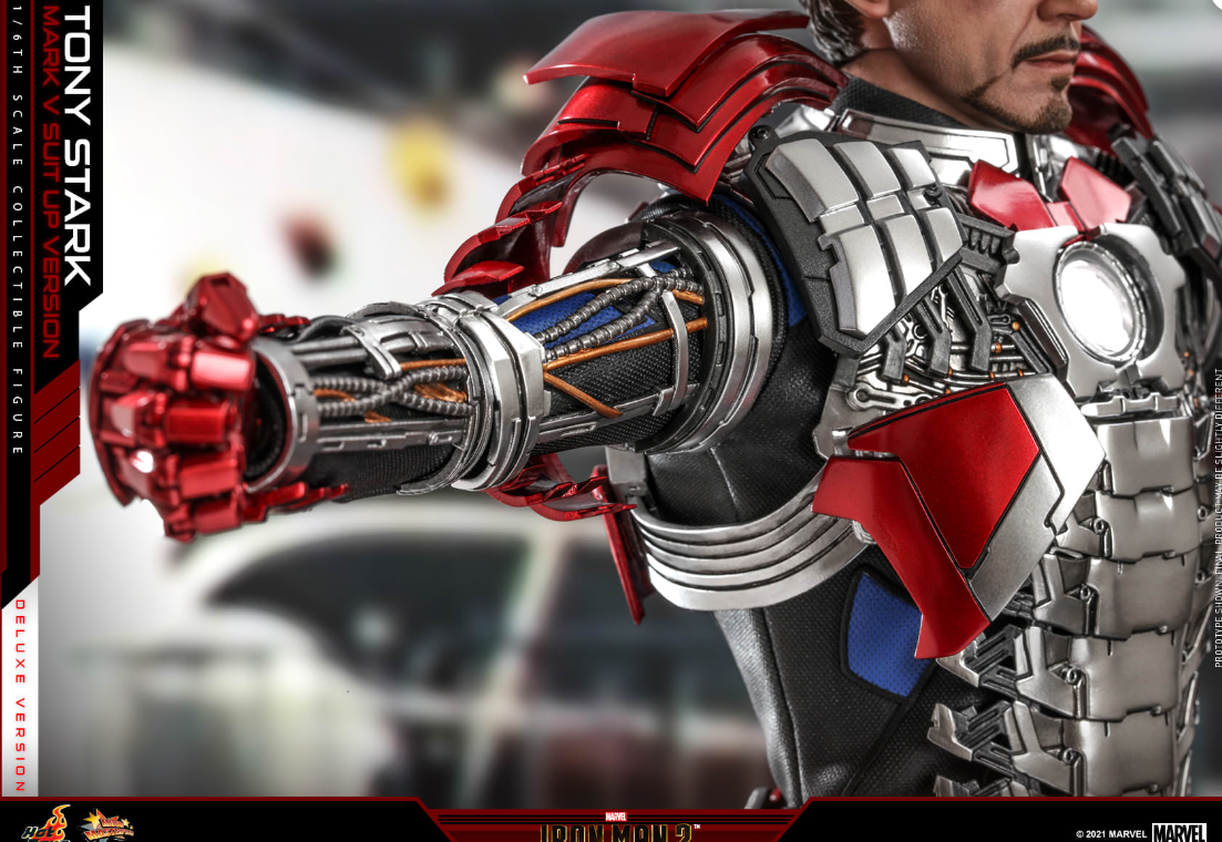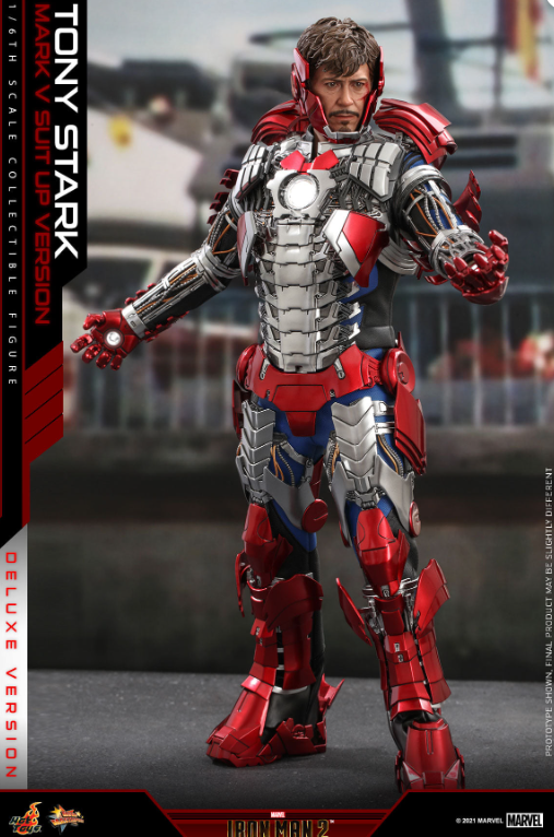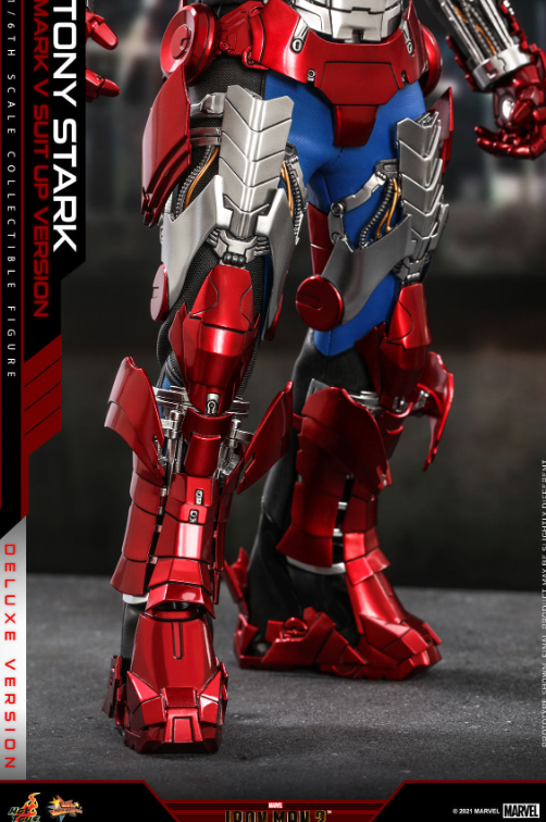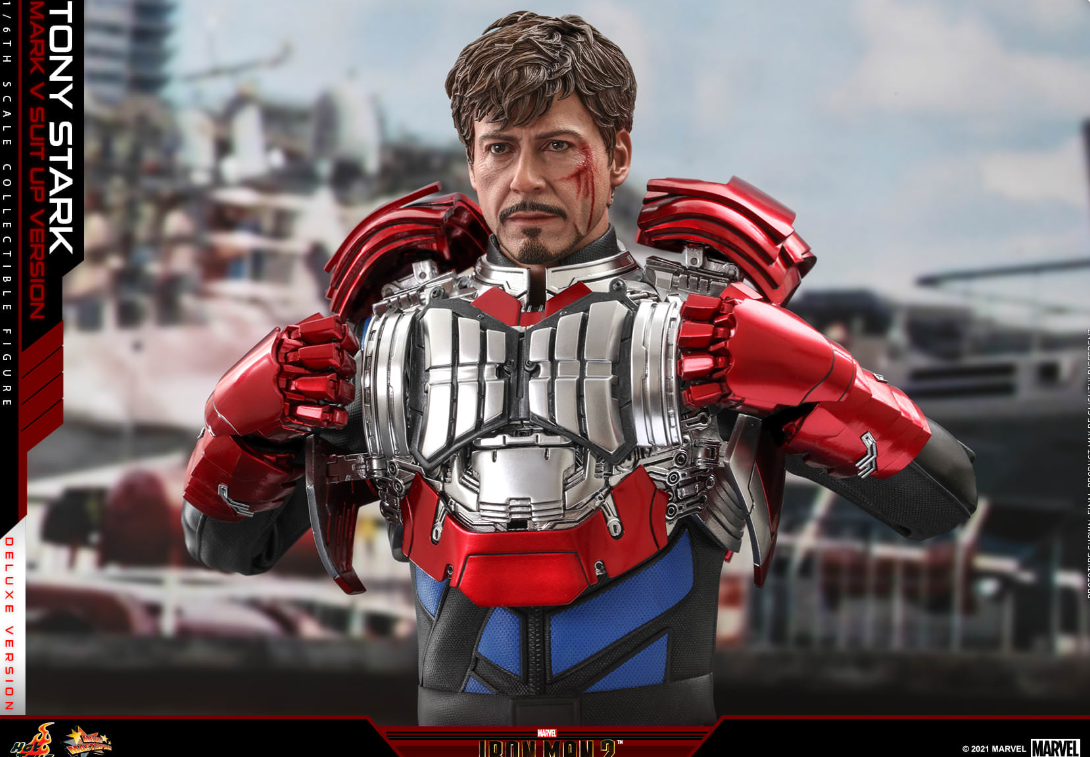 The 1/6th scale Tony Stark (Mark V Suit up Version) Collectible Figure (Deluxe Version) specially features: