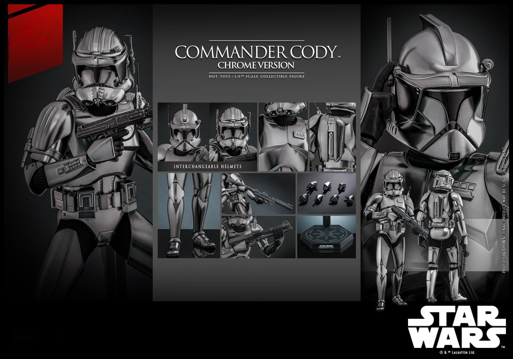 The 1/6th scale Commander Cody™ (Chrome Version) Collectible Figure specially features: