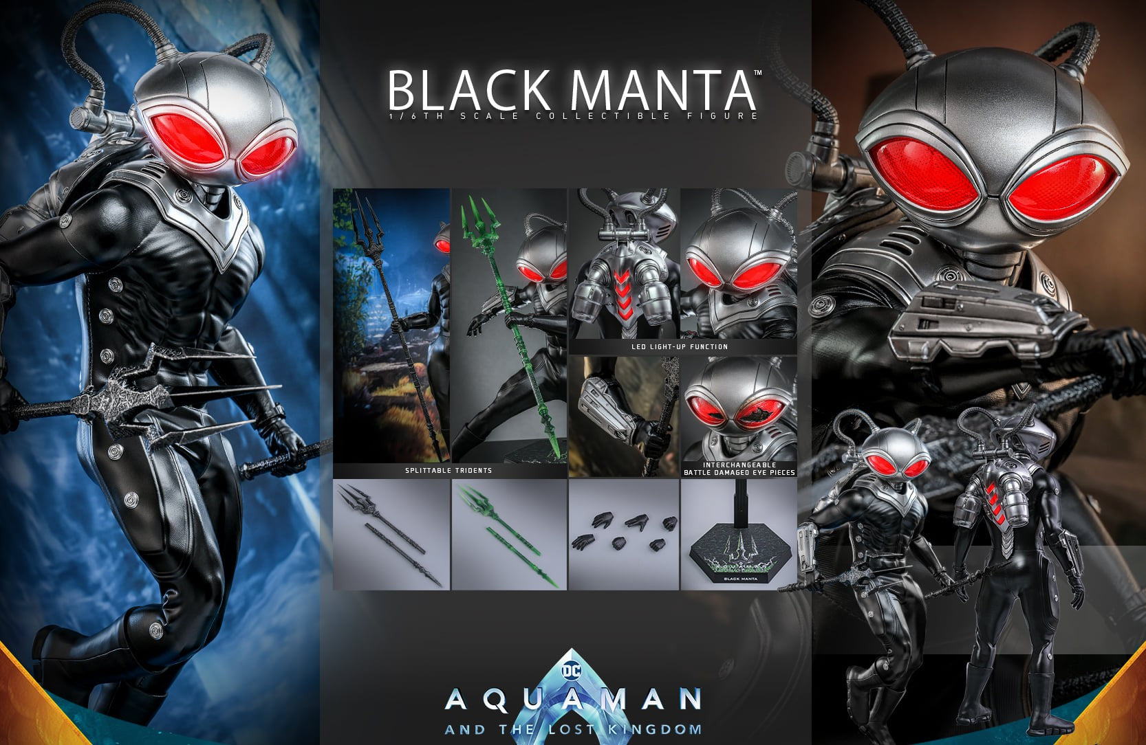 The 1/6th scale Black Manta Collectible Figure specially features: