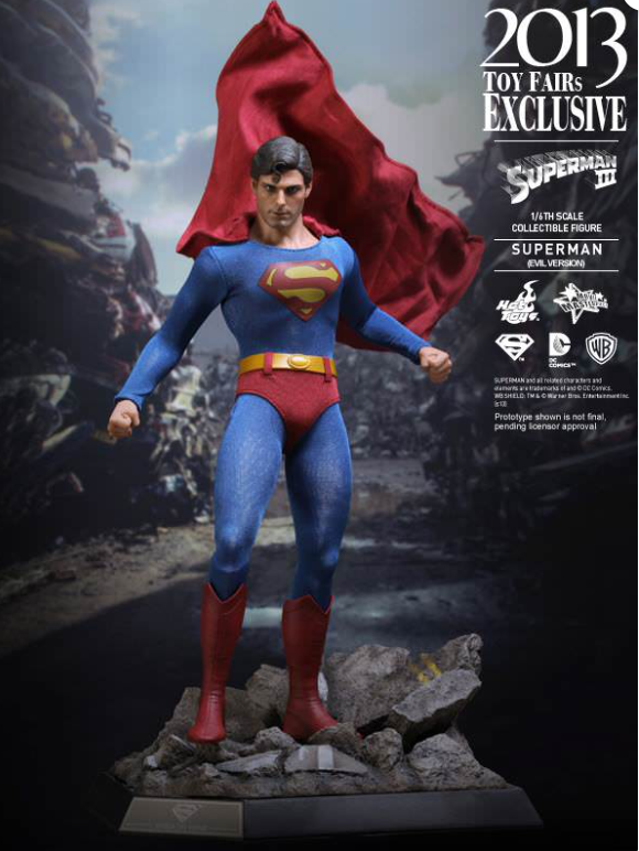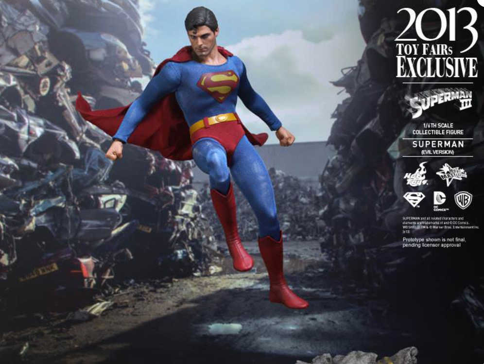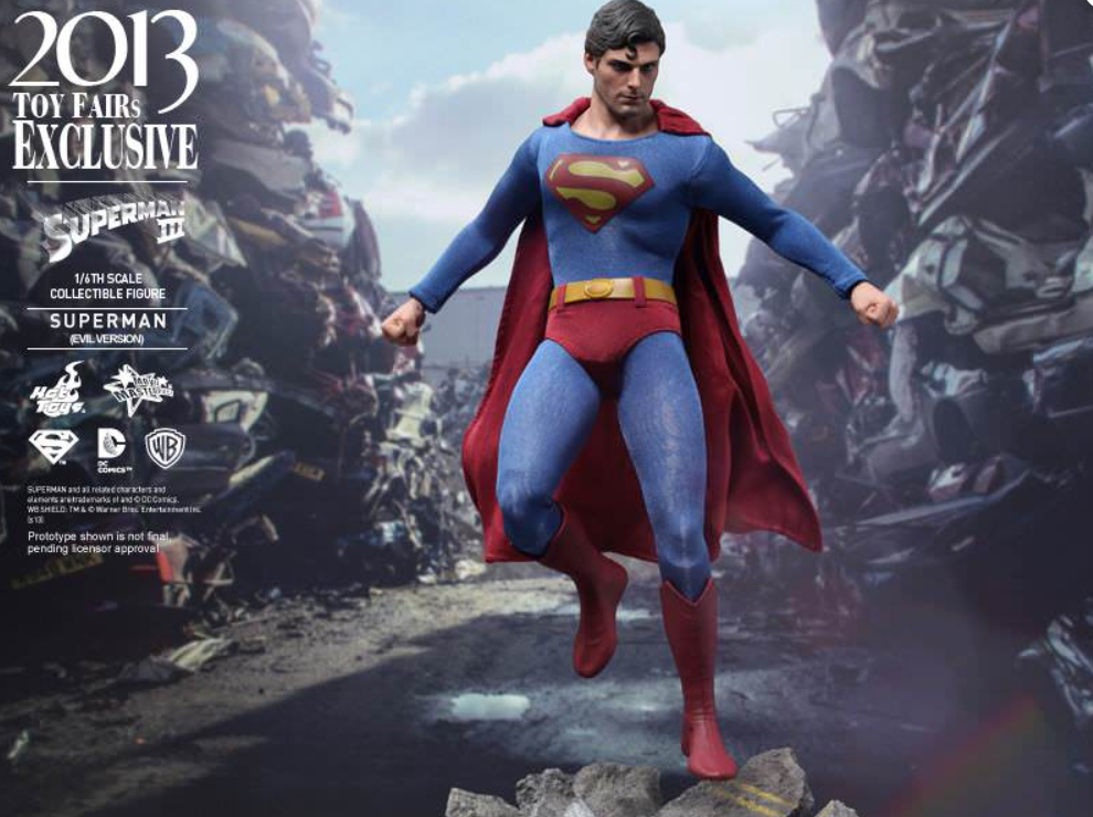 Hot Toys is happy to present the 1/6th scale Superman (Evil Version) Collectible Figure from Superman III as one of the 2013 Toy Fairs Exclusive items. This collectible is specially crafted based on the image of Christopher Reeve in the movie, highlighting the detailed head sculpt, movie-accurate costume and specially-designed figure stage.