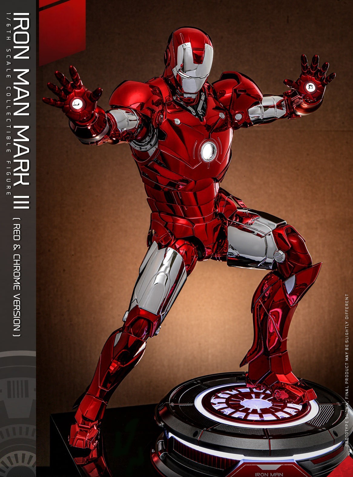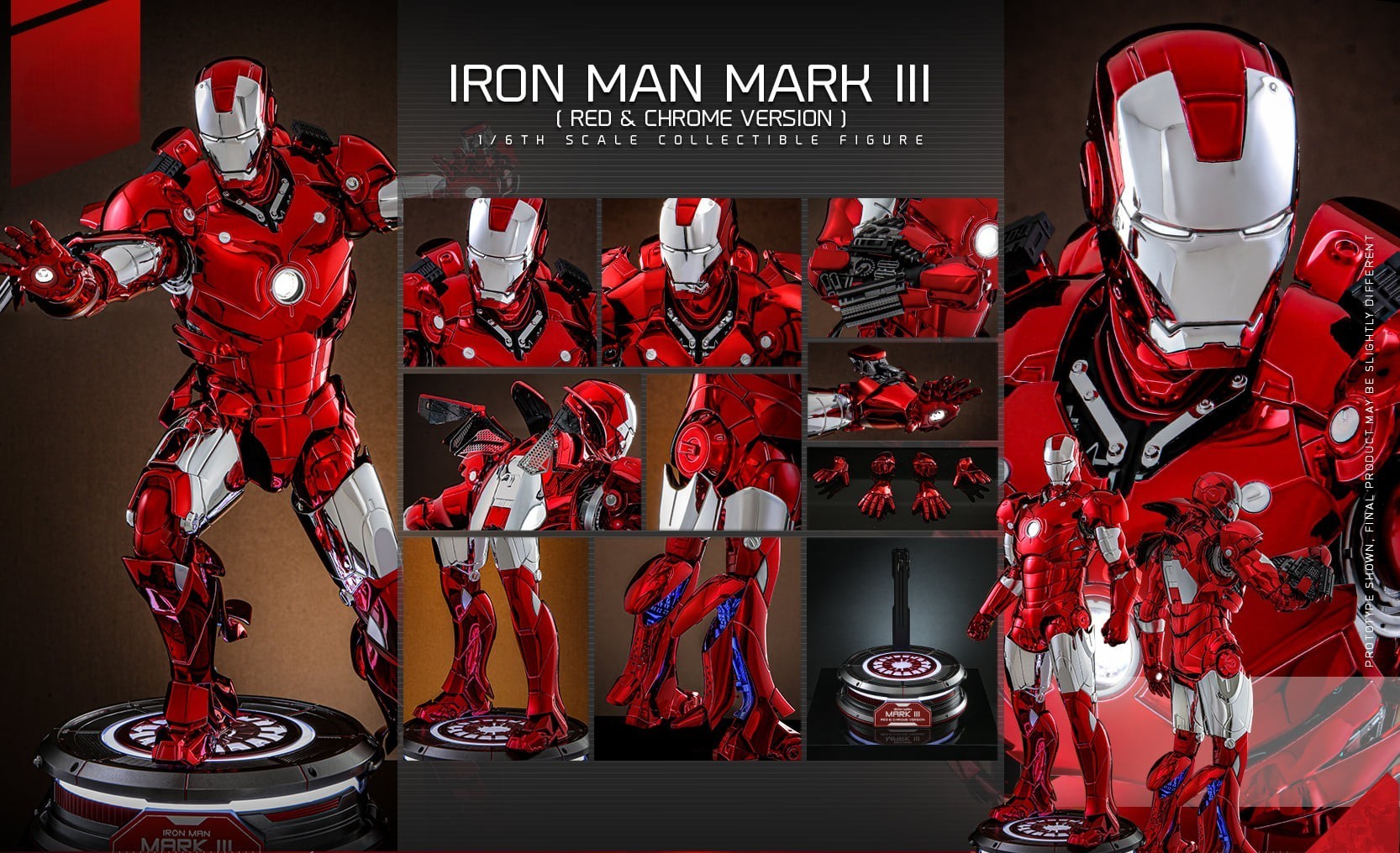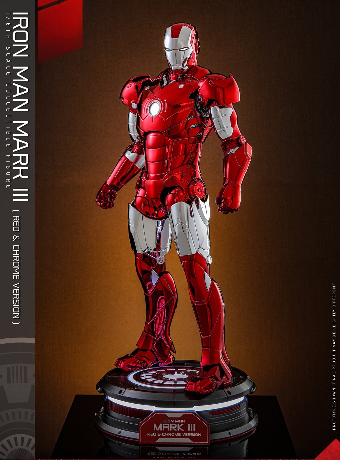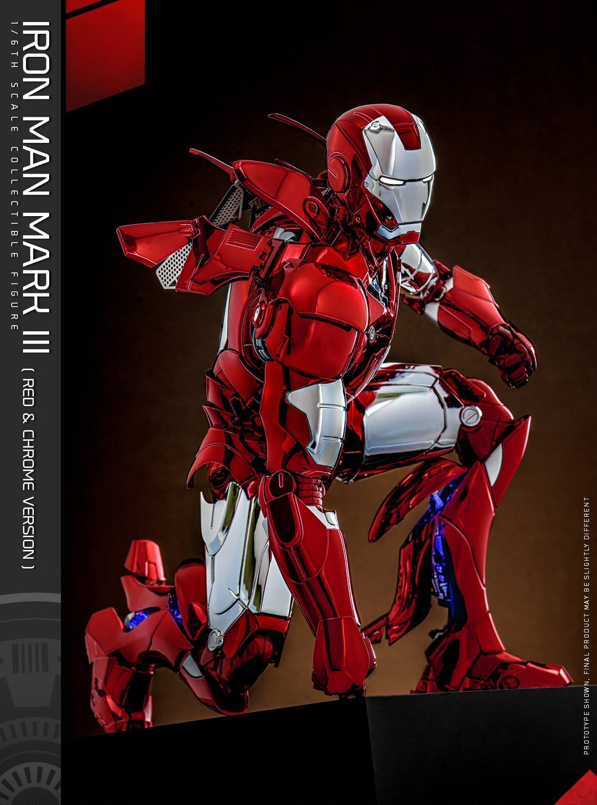 The 1/6th scale Iron Man Mark III (Red & Chrome Version) Collectible Figure specially features: