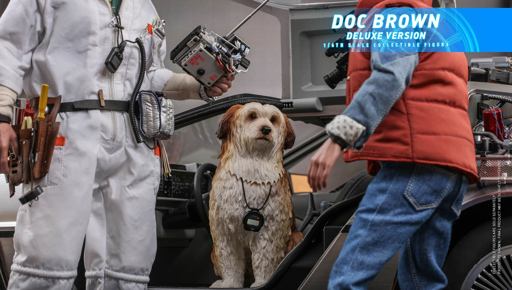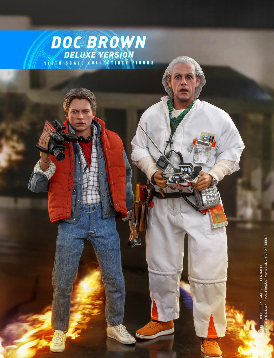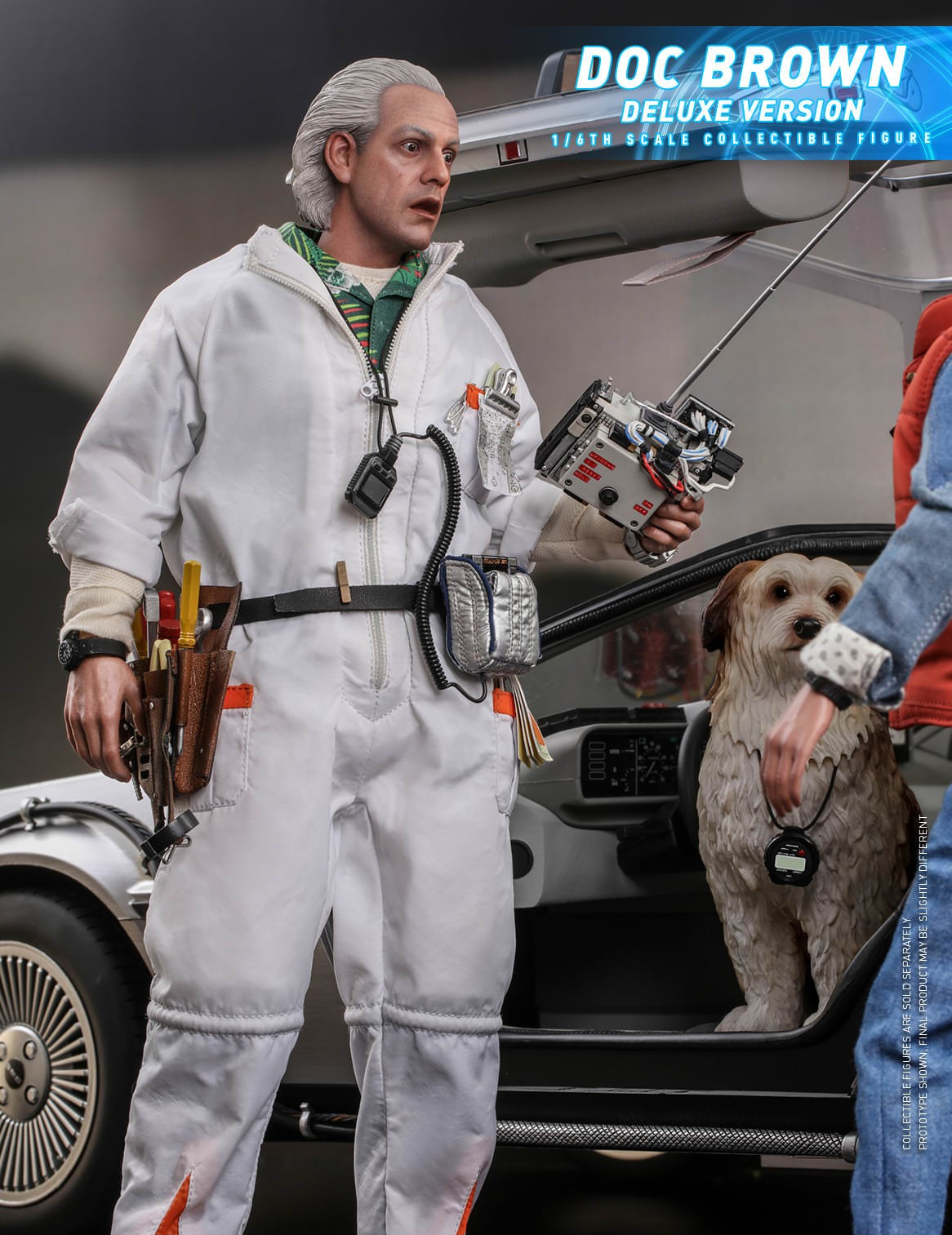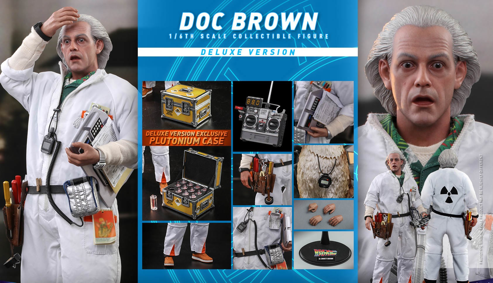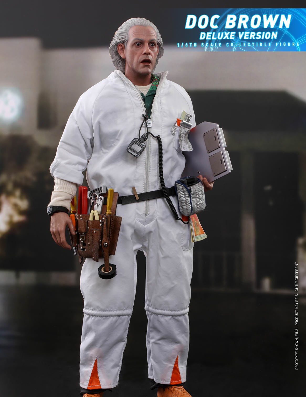 The 1/6th scale Doc Brown Collectible Figure (Deluxe Version) specially features: