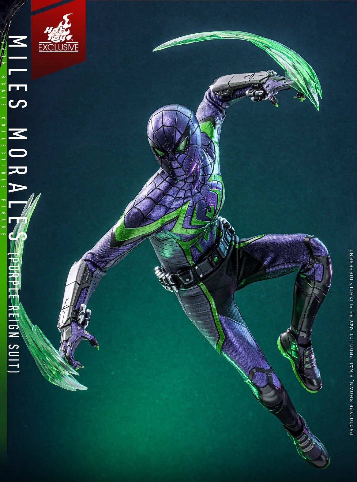 - Authentic and detailed likeness of Miles Morales wearing Purple Reign Suit in