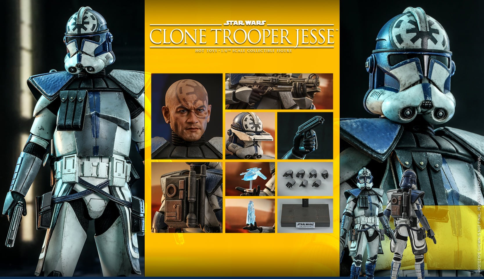 The 1/6th scale Clone Trooper Jesse Collectible Figure specially features: