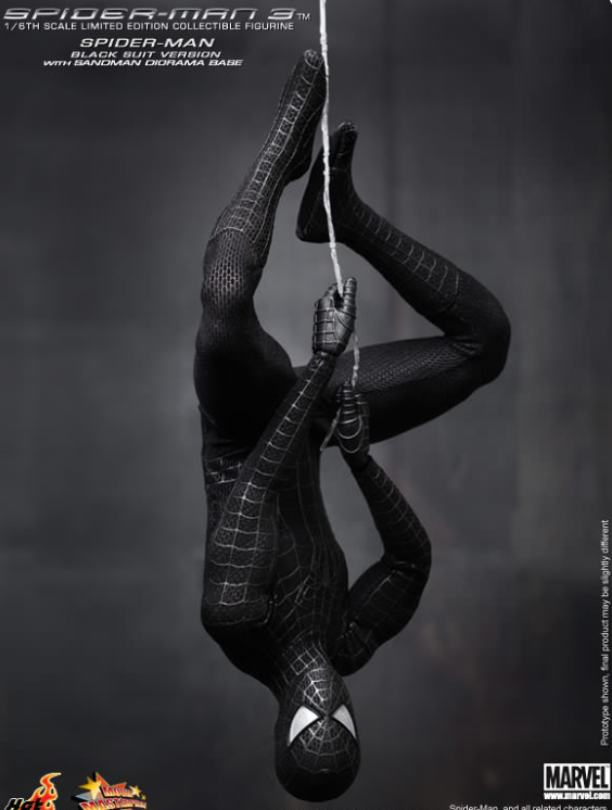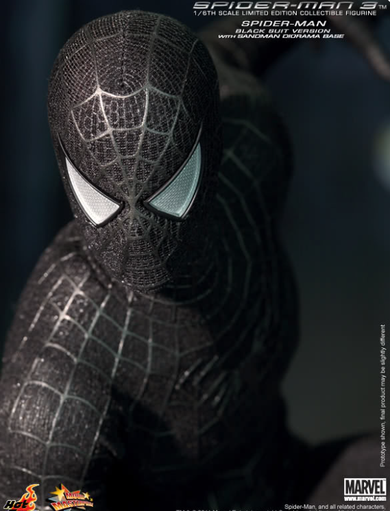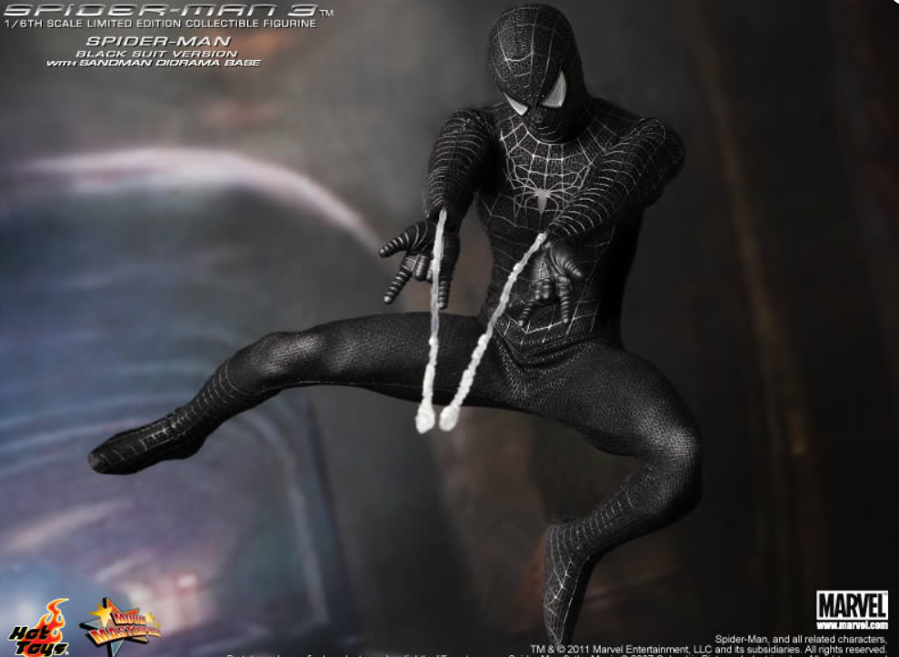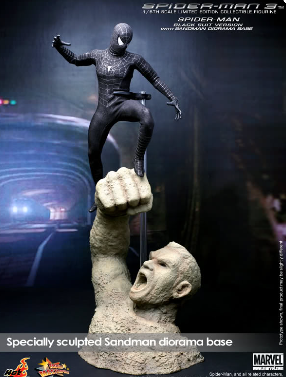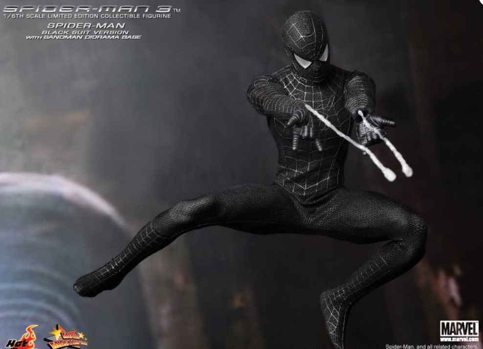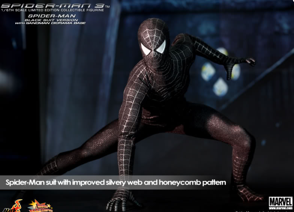 Hot Toys is proud to present the 1/6th scale Spider-Man (Black Suit Version) Limited Edition Collectible Figurine with Sandman Diorama Base from the Spider-Man 3 movie. The movie-accurate Spider-Man collectible is specially crafted based on the superhero image of the iconic character Spider-Man in black suit in the movie.
