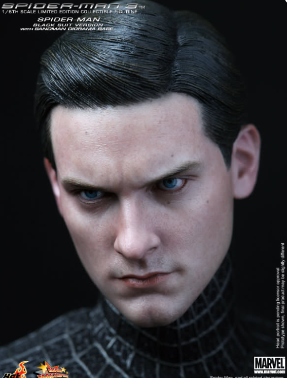 – Authentic and detailed fully realized likeness of Spider-Man in black suit, featuring the likeness of Tobey Maguire as Spiderman / Peter Parker in the Spider-Man 3 movie