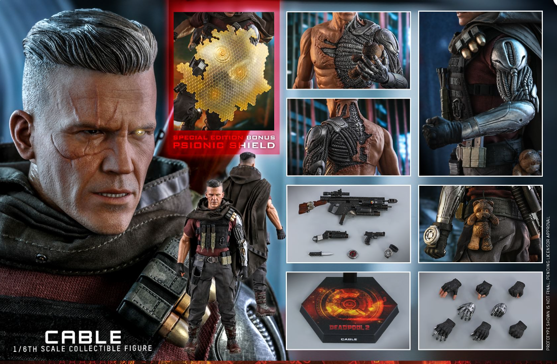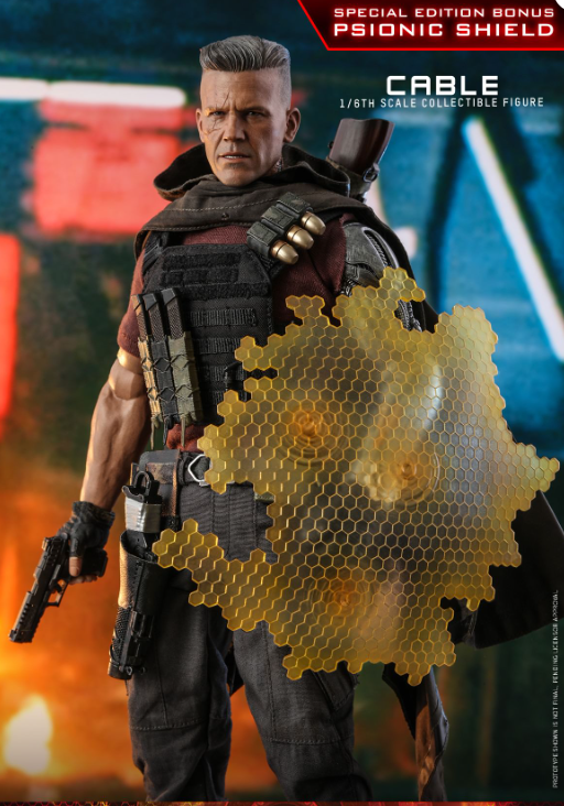 The highly-accurate figure is specially crafted based on the appearance of Josh Brolin as Cable in Deadpool 2, features a newly developed head sculpt with battle scars and LED light-up function on left eye; accurate silver grey colored hair sculpture; a completely newly designed body and highly-detailed bionic arm, carefully painted in multiple shades of metallic colors; skillfully tailored military outfit with heavy weathering effect; a number of matching interchangeable gloved hands and mechanical hands; an array of extensive weapons and accessories including Cable’s signature heavy machine gun, a grenade launcher, a pistol, a dagger, a bomb, a time travelling device, multiple numbers of removable bullets and firearm magazines, an iconic teddy bear doll with significant burnt marks; and a collectible figure base.