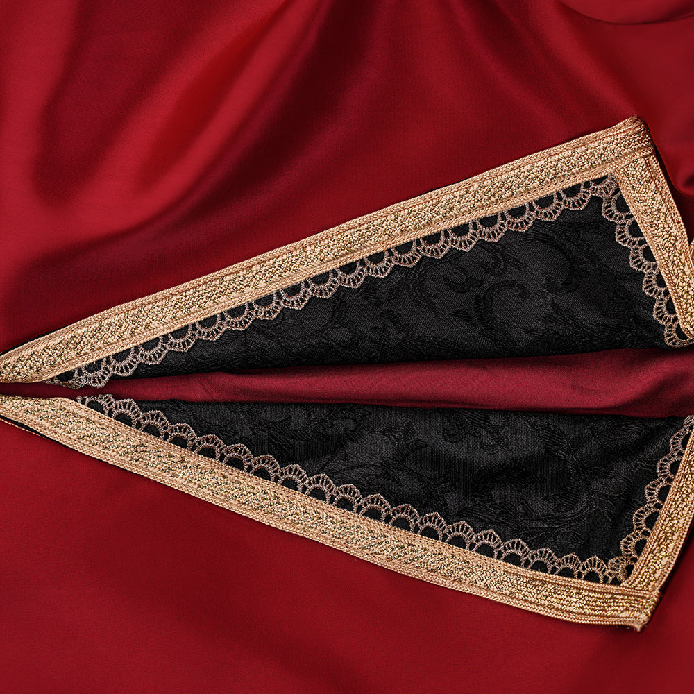 • Red high-elastic fabric with dazzling details.
