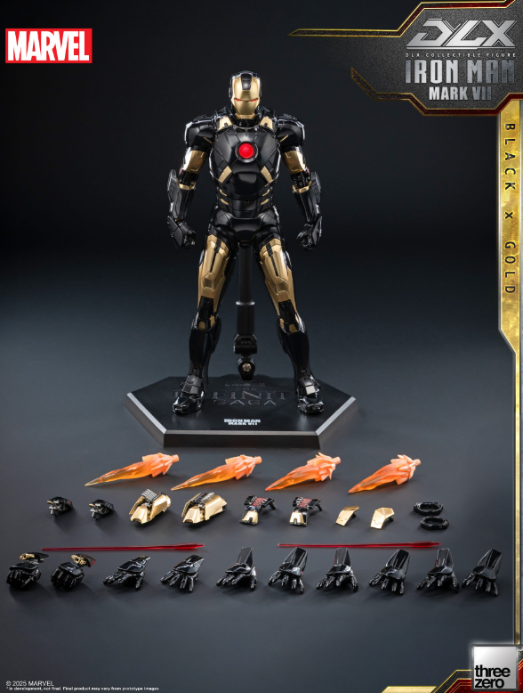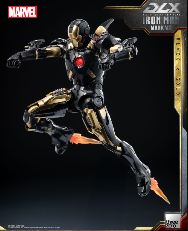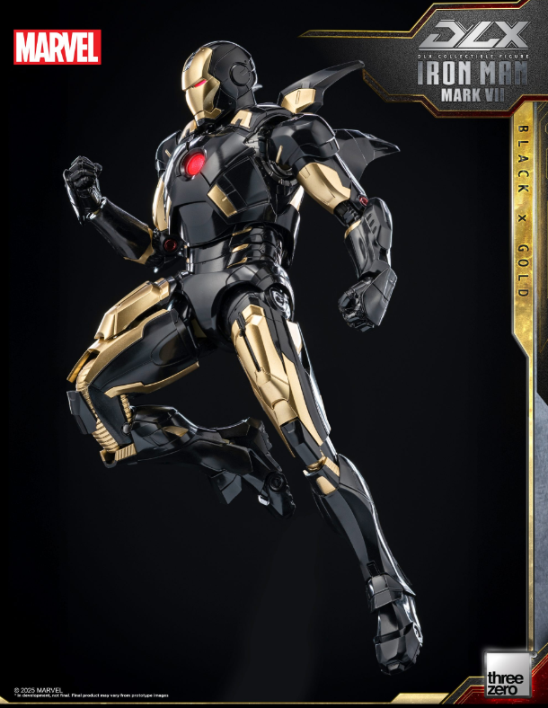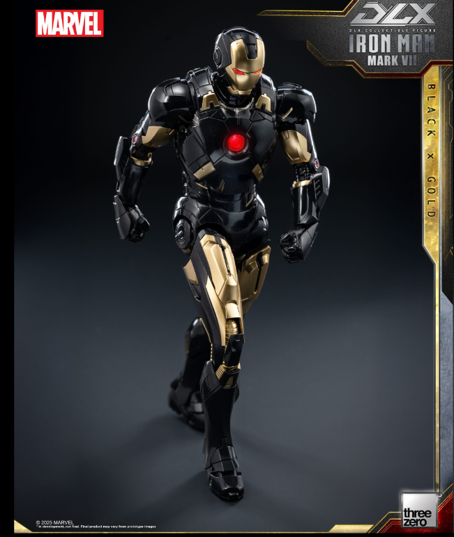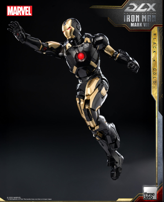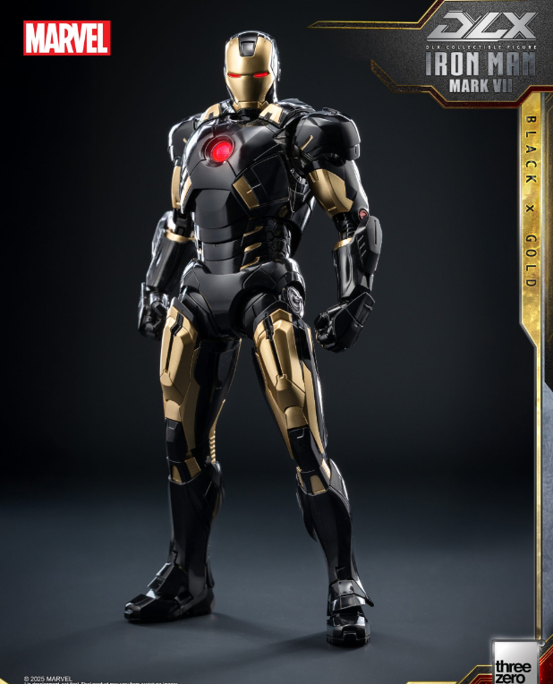 threezero and Marvel Studios proudly present the latest addition to the DLX series—the DLX Iron Man Mark 7 (Black X Gold). This special edition reimagines Tony Stark’s iconic armor from Marvel Studios’ The Avengers with a striking black and gold color scheme, carefully realized by threezero’s multi-layer painting technique.