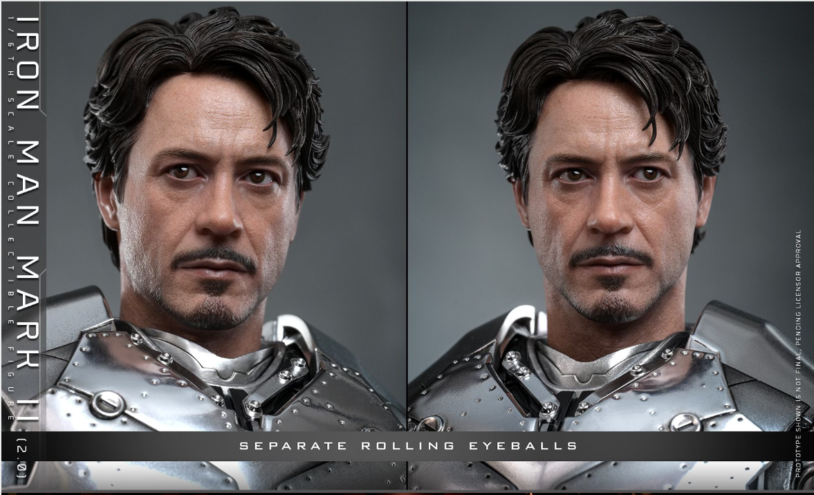 – One (1) newly developed head sculpt features authentic likeness of Robert Downey Jr. as Tony Stark in the movie, comes with separate rolling eyeballs system