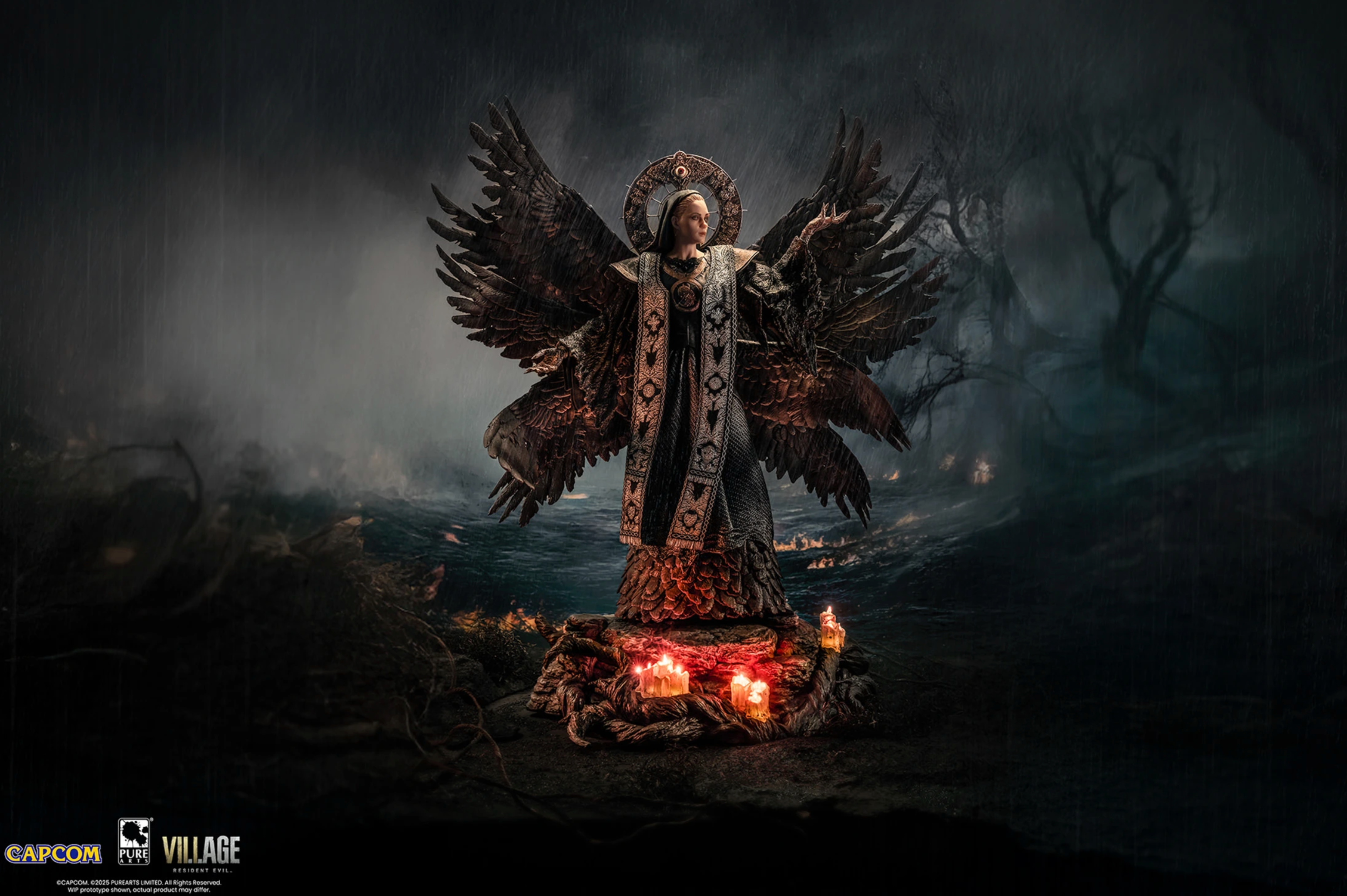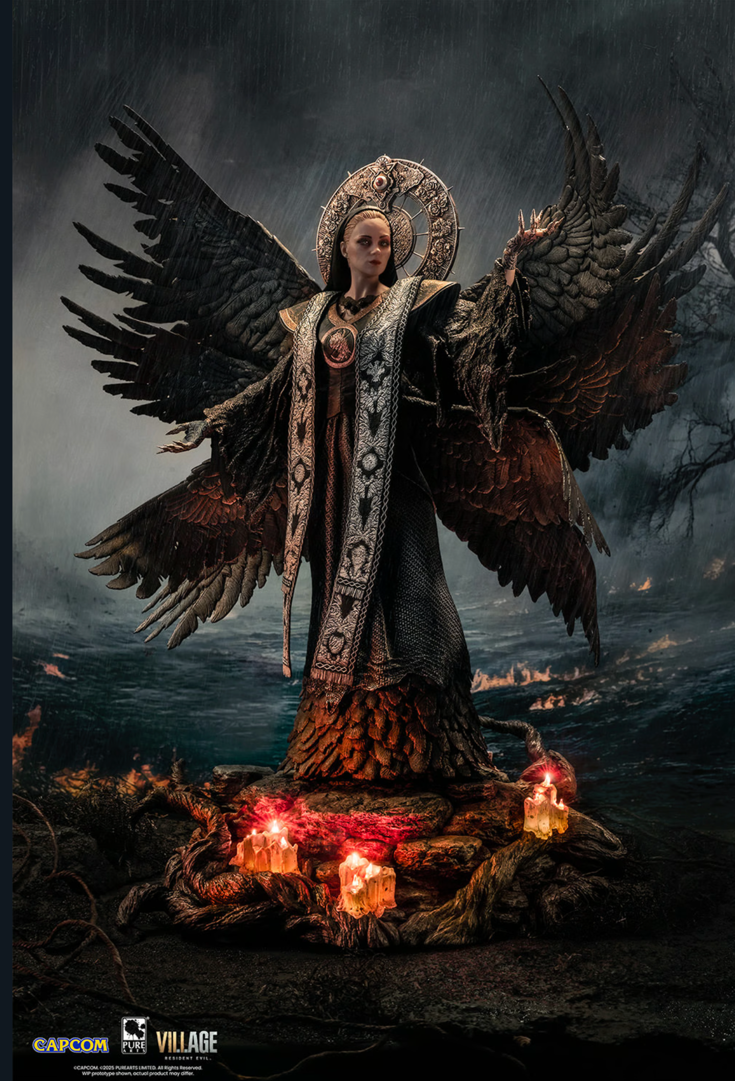 Cult leader, biologist, and superhuman villain of Resident Evil Village is captured in stunningly high detail! All six of her majestic wings are spread and her golden halo and expertly sculpted dress exude divinity.