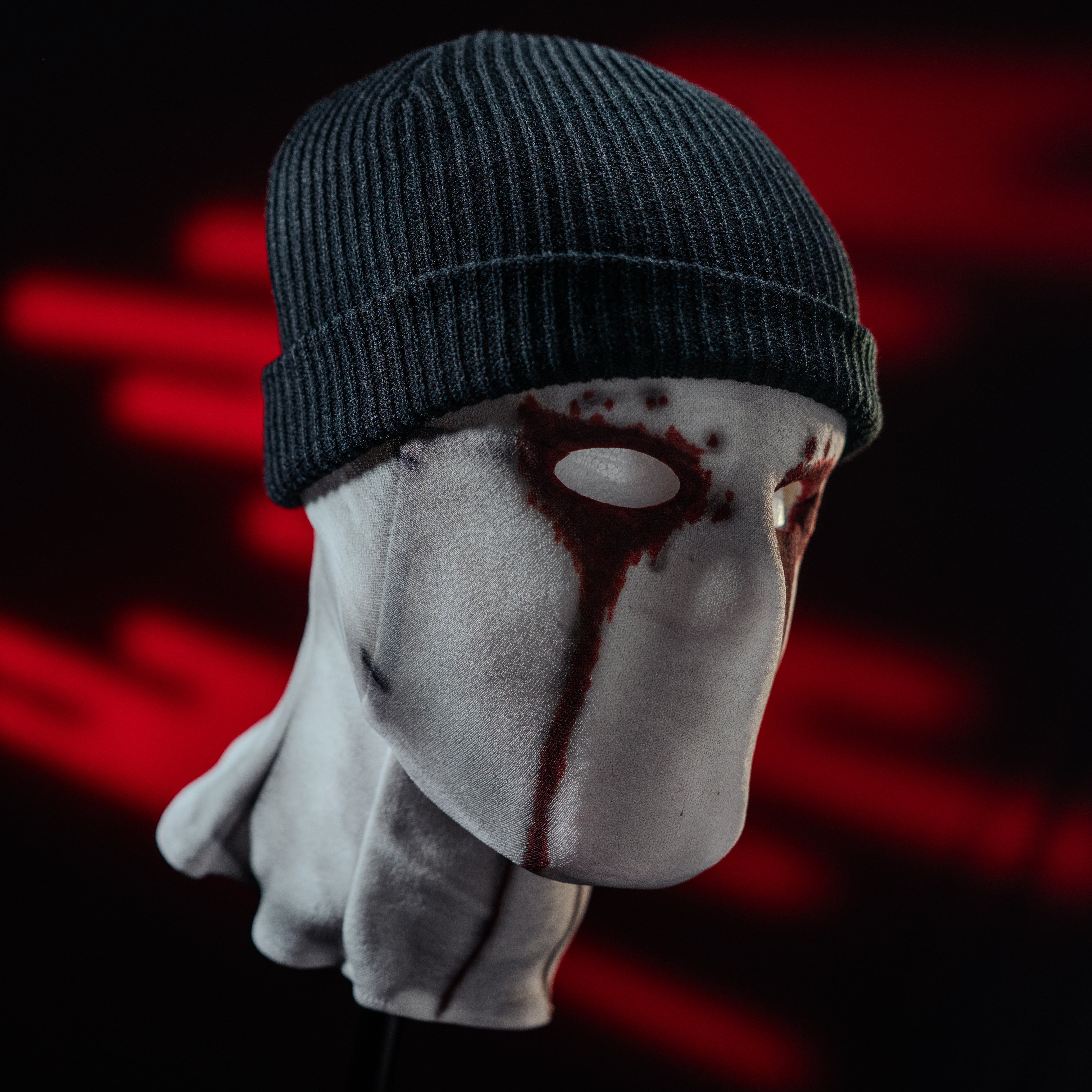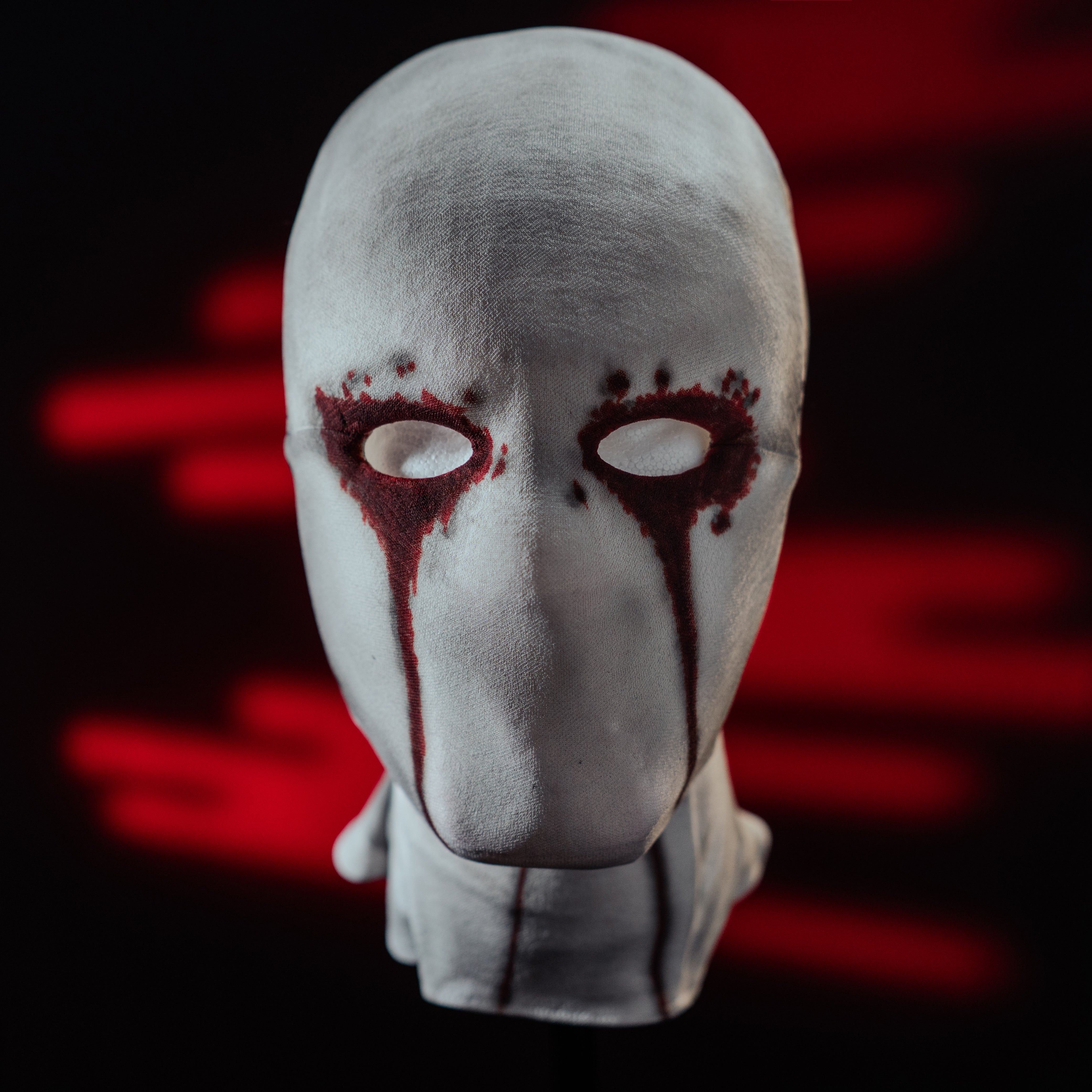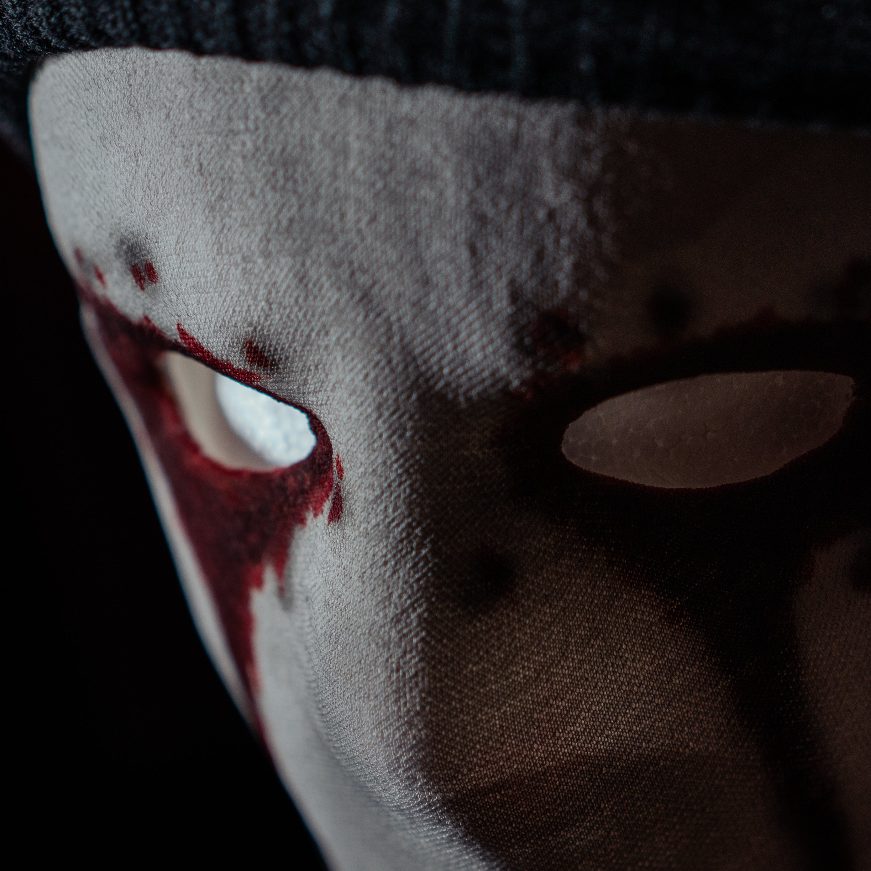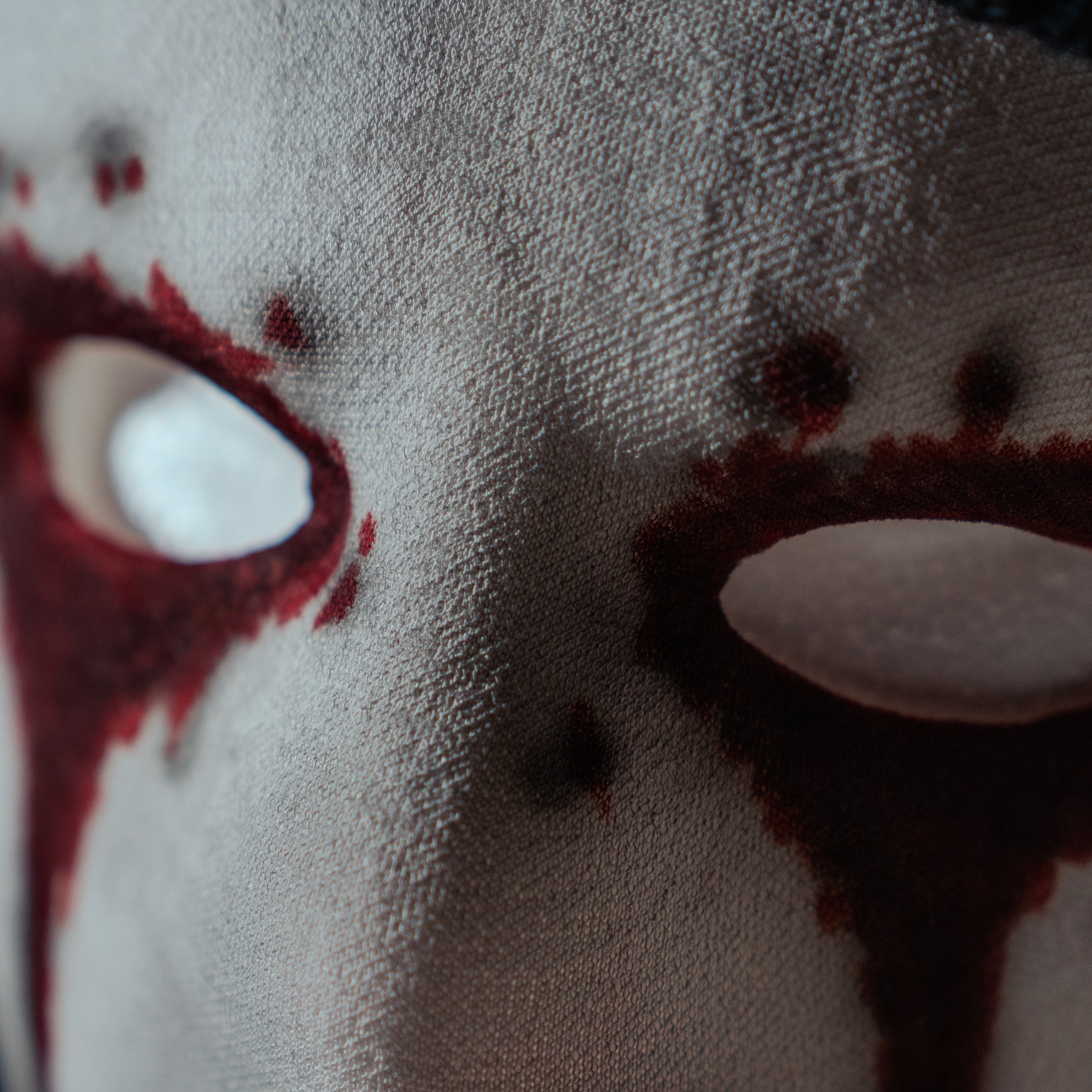 The fabric material used for the mask mimics the texture and appearance seen in the series. To enhance its authenticity, the mask is detailed with paint effects that replicate bloodstains, closely resembling the show's iconic look.