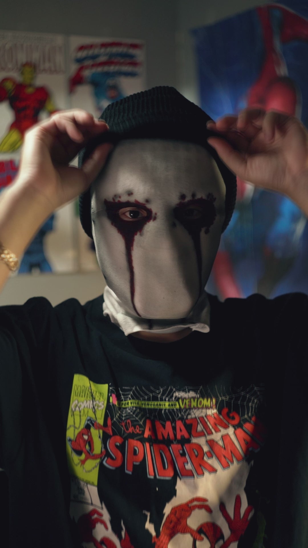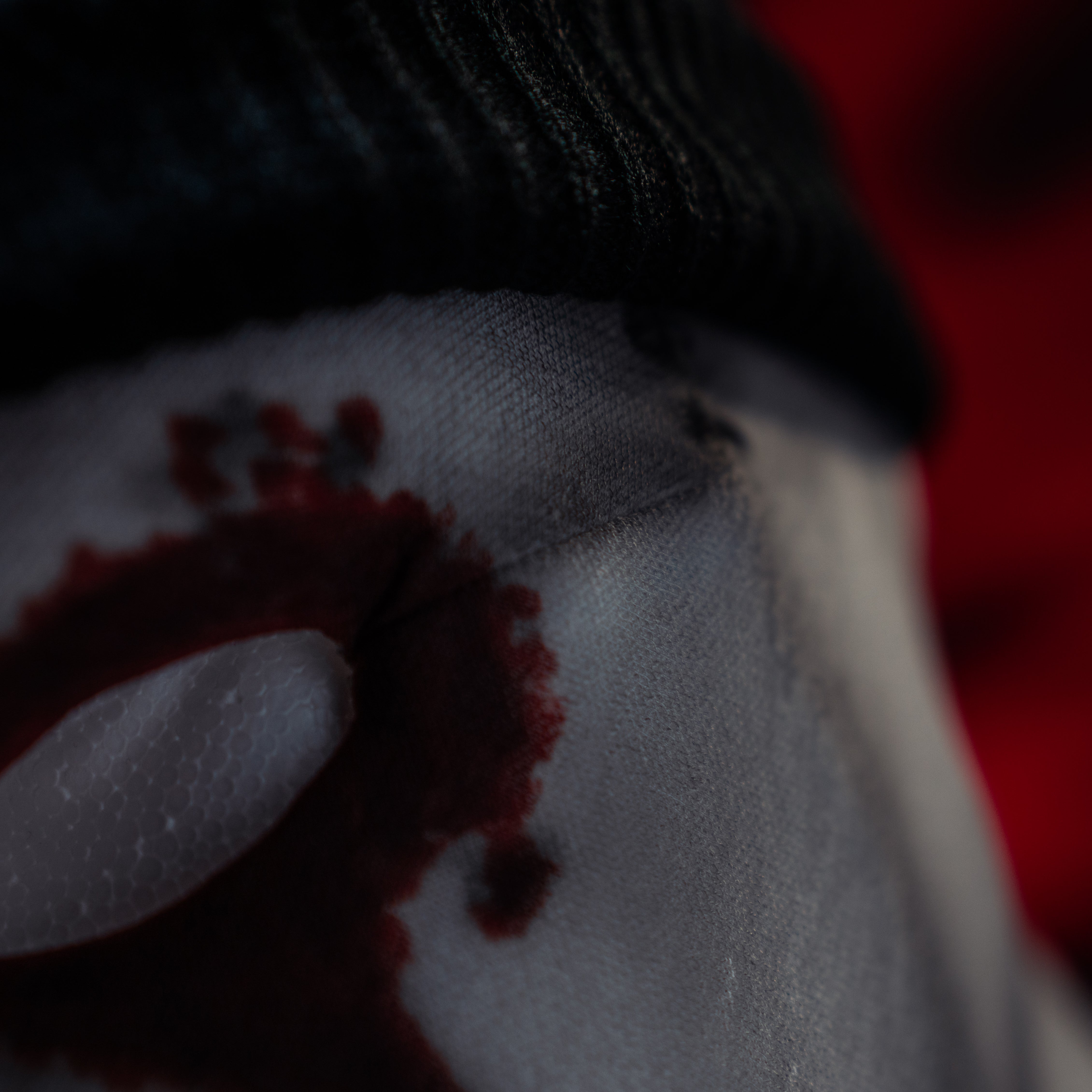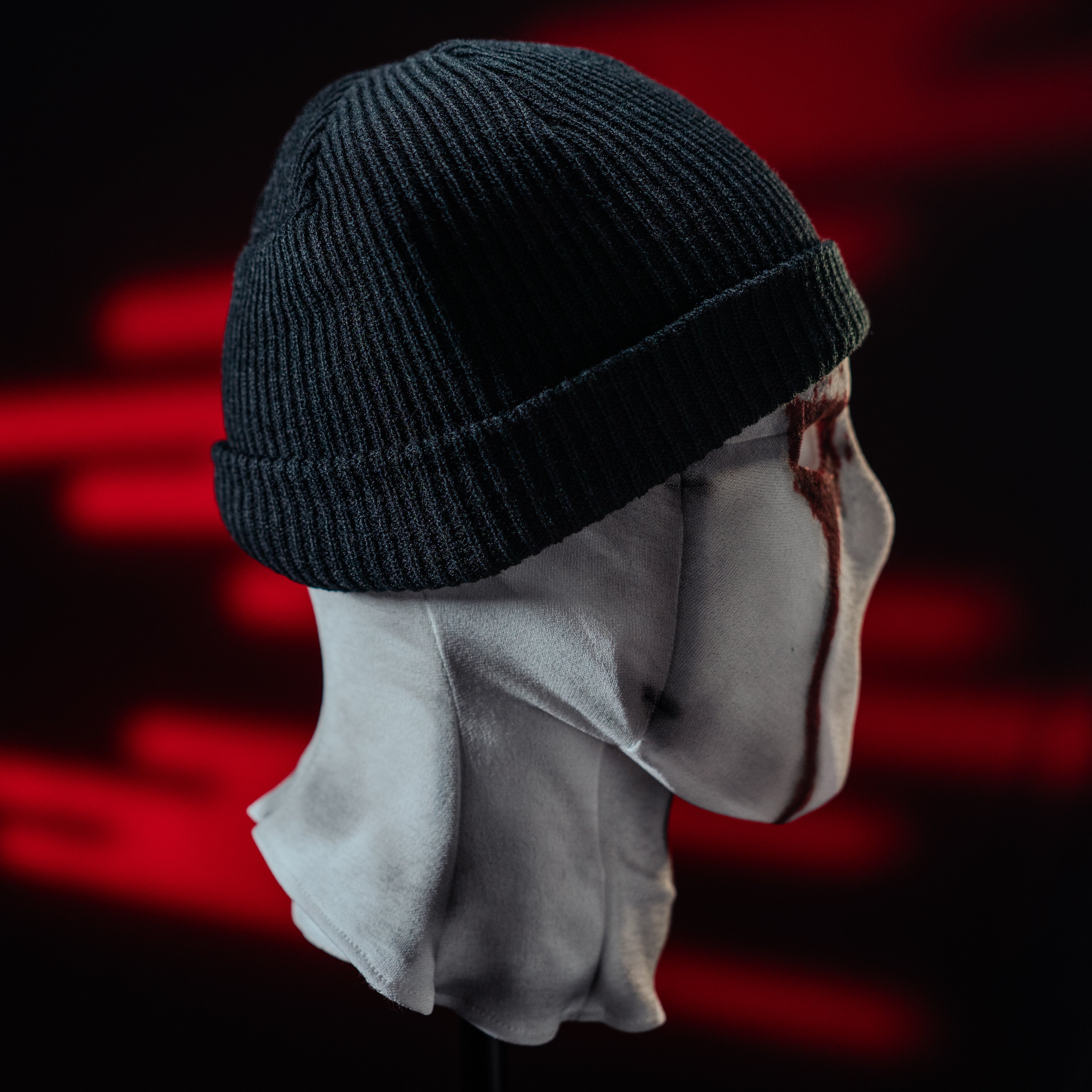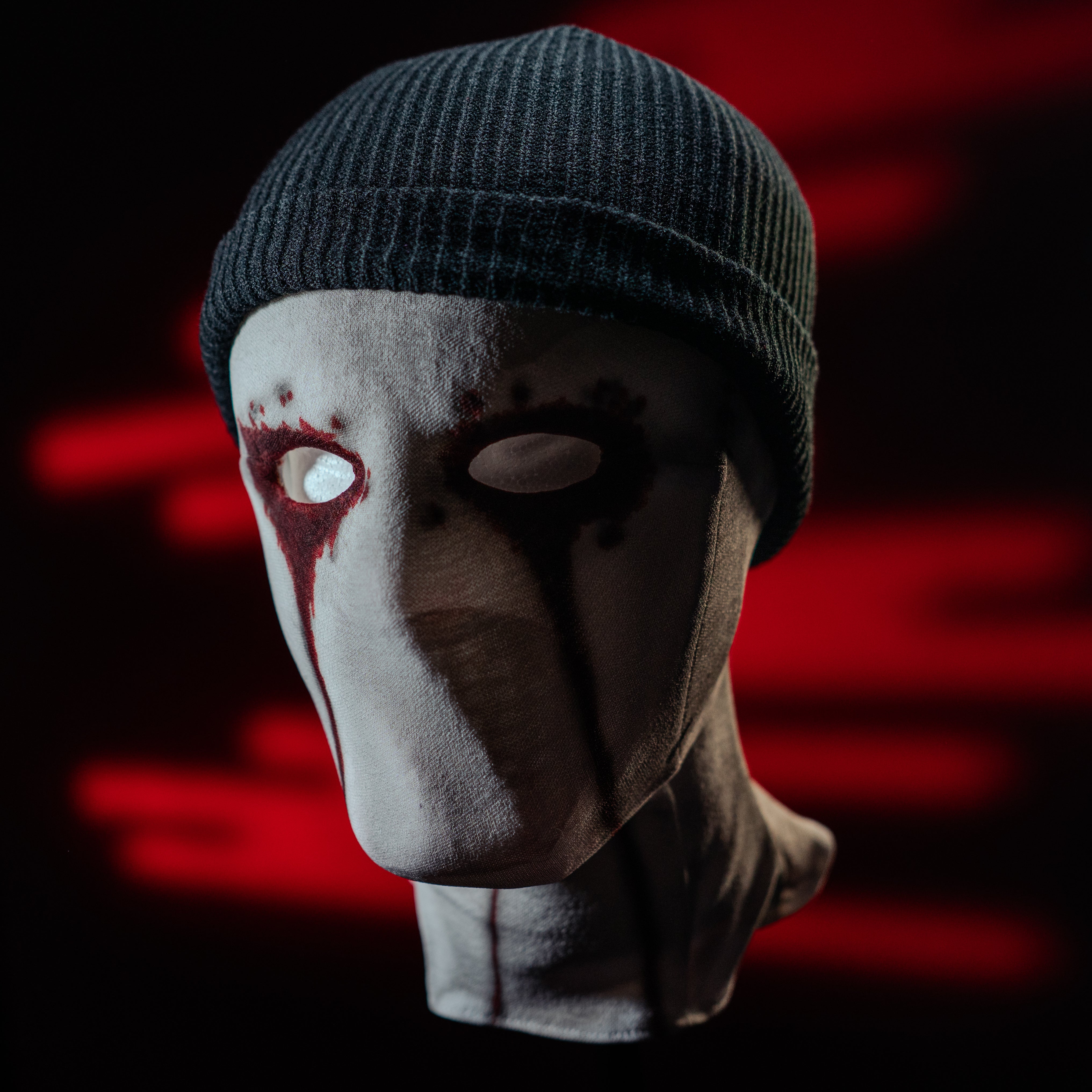 The fabric material used for the mask mimics the texture and appearance seen in the series. To enhance its authenticity, the mask is detailed with paint effects that replicate bloodstains, closely resembling the show's iconic look.