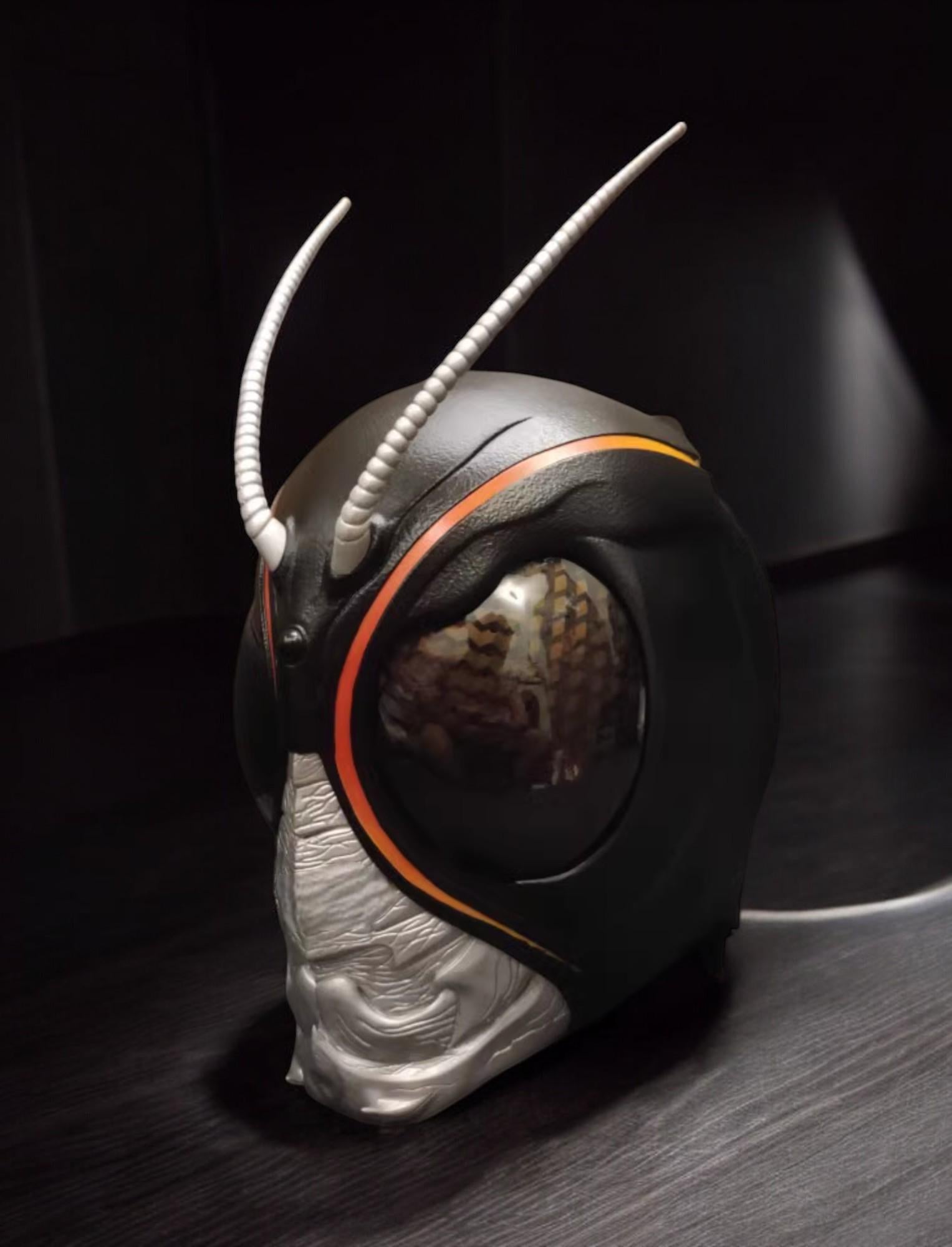 Transform into the legendary Kamen Rider with this 1:1 scale custom helmet.