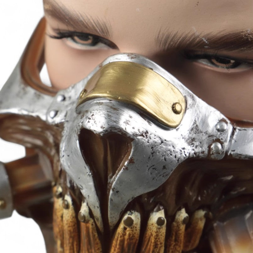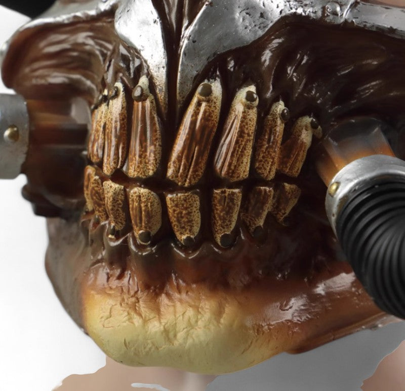 Unleash your post-apocalyptic style with the Mad Max Half-Face Mask Helmet and Zinc Alloy Ring. Made from durable PVC, the mask balances toughness and lightweight comfort, perfect for cosplay events, Halloween, or themed performances. The included metallic ring, crafted from high-quality zinc alloy with electroplated silver, adds an authentic touch to your costume. With its universal fit and attention to detail, this set is ideal for fans, collectors, and cosplay enthusiasts. Embrace the chaos and make a statement!